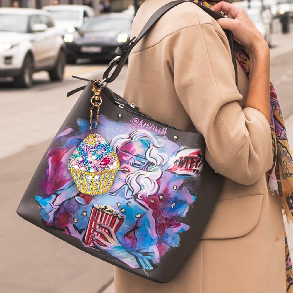 4pcs DIY Keychain Diamond Painting Cake Ice Cream Key Ring Pendant Gift