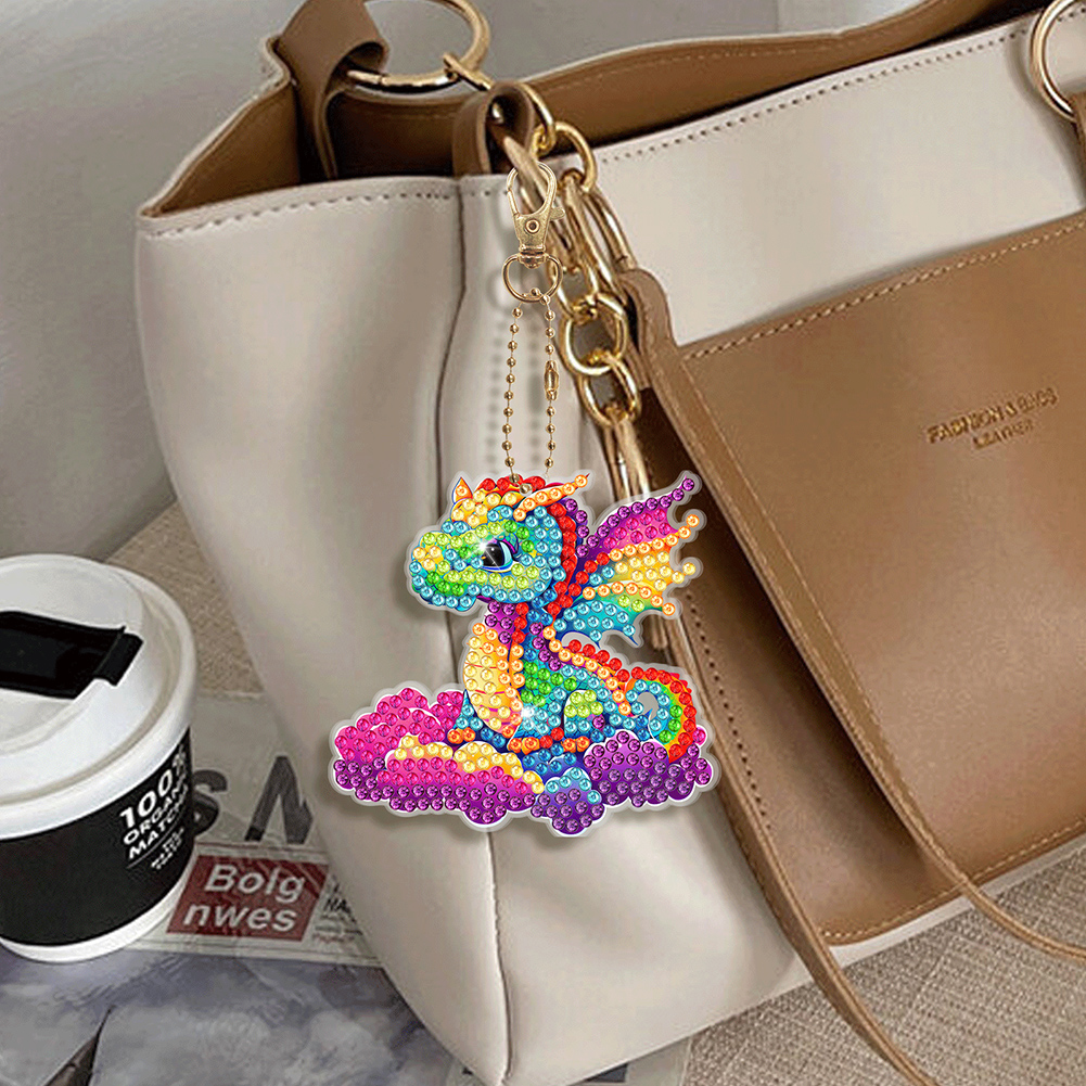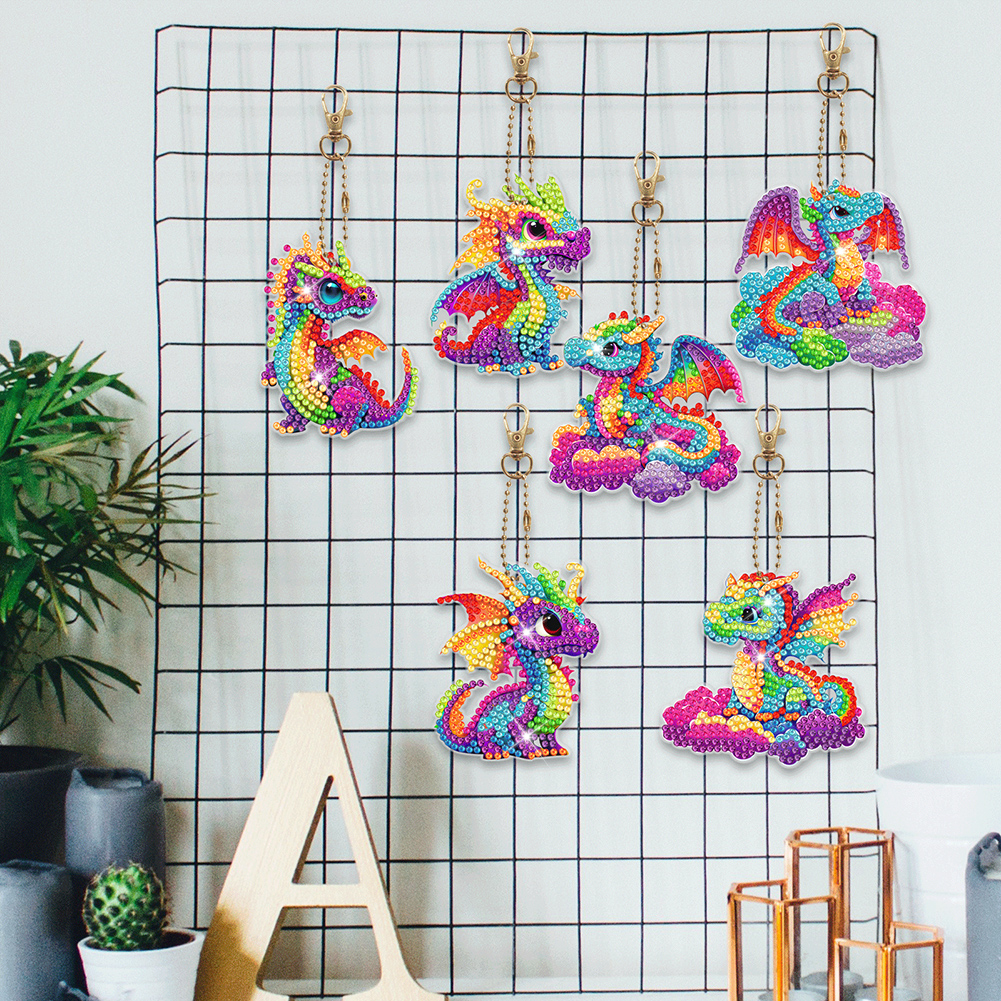 6pcs Pterosaur Diamond Art Keychains Handmade DIY Christmas Decoration Gift(Double Side)