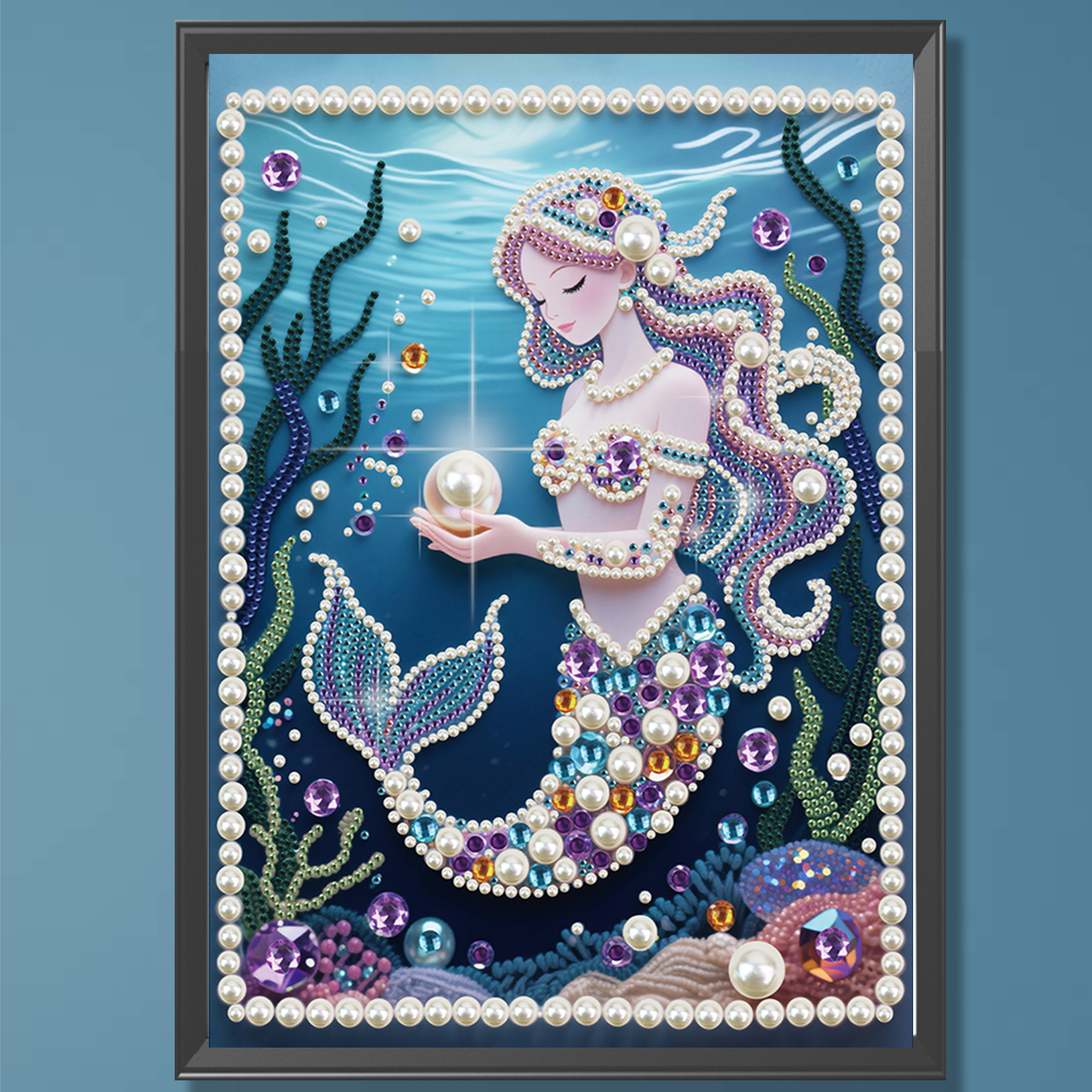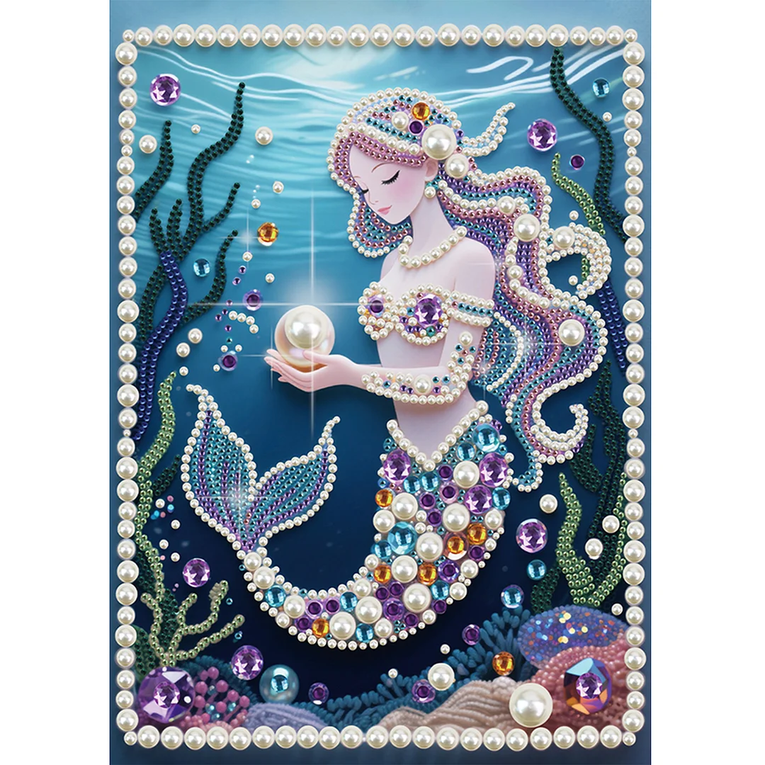 Blue Mermaid DIY Partial Diamond Pearl Painting Art Kits 30x40cm Special Shape Pearl Gem Paintings Picture Arts Craft for Adults Beginners Home Wall Decor