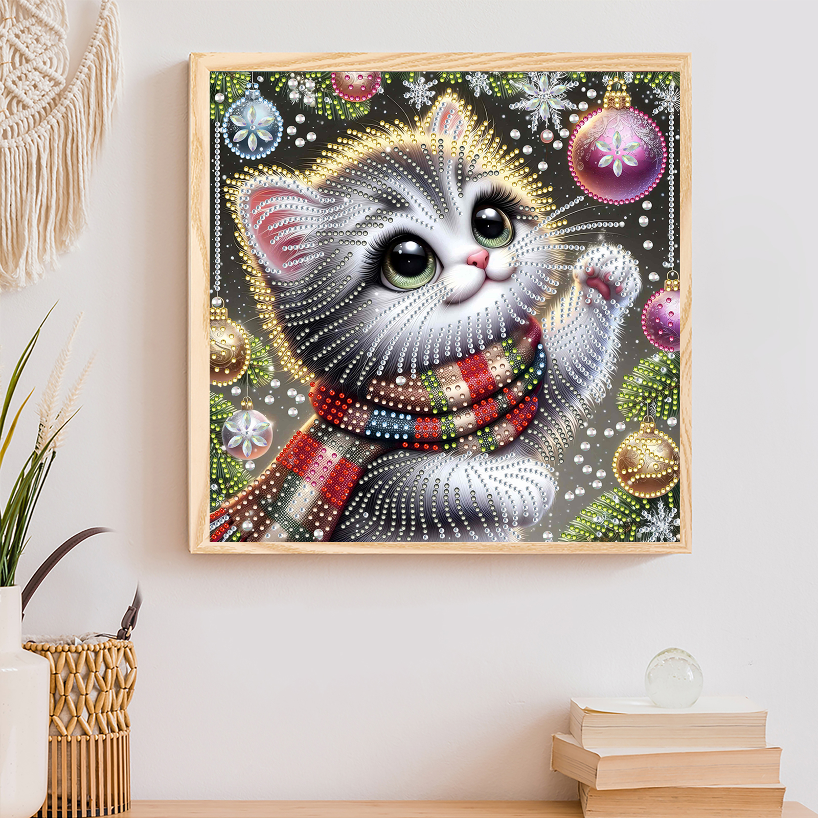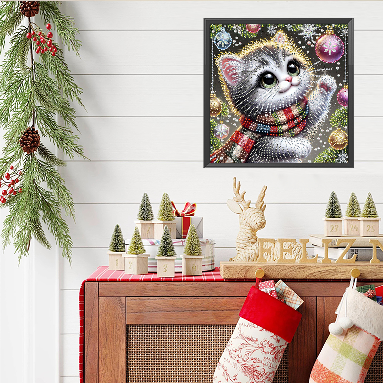 Christmas Cat - Diamond Painting - Partial Special Shaped Drill(Canvas|30*30cm)