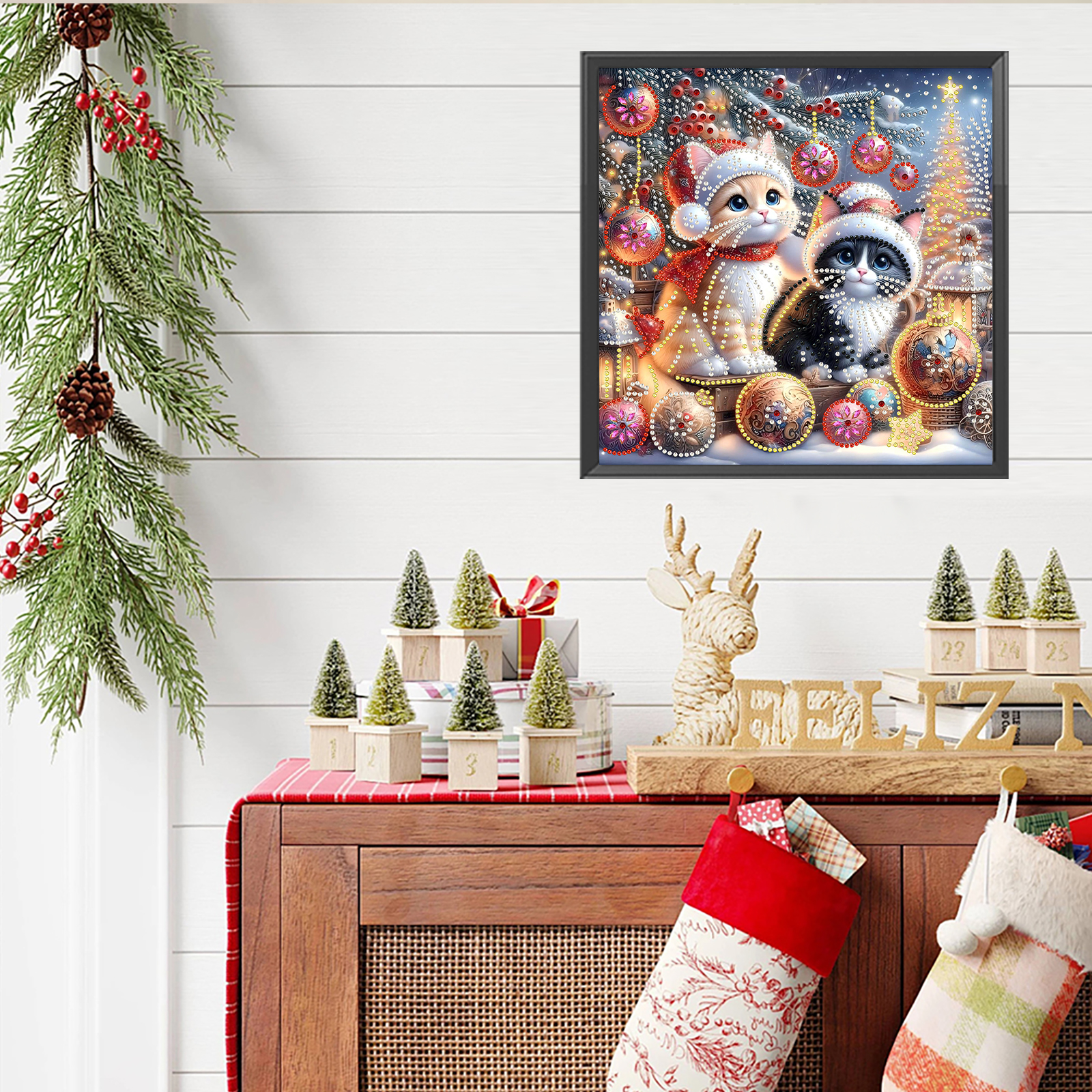 Christmas Cat - Diamond Painting - Partial Special Shaped Drill(Canvas|30*30cm)