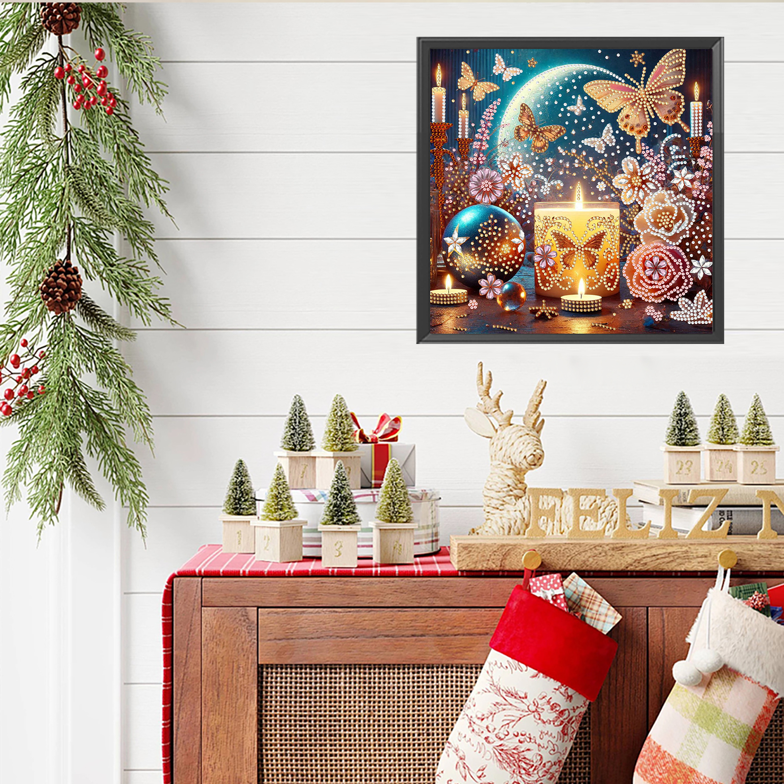 Flowers Candle - Diamond Painting - Partial Special Shaped Drill(Canvas|30*30cm)