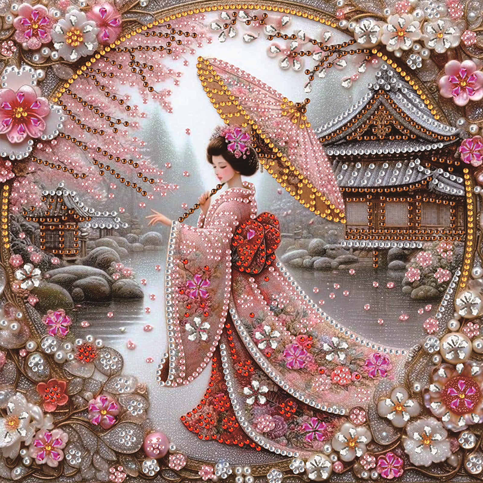 Japanese Beauty Special Shaped 5D DIY Partial Drill Diamond Painting Kit 30x30cm