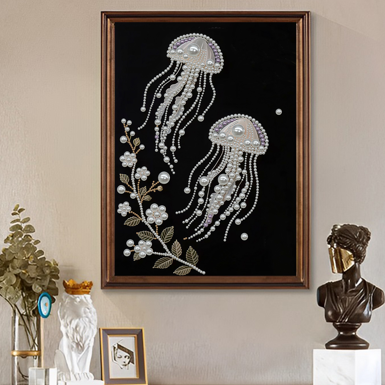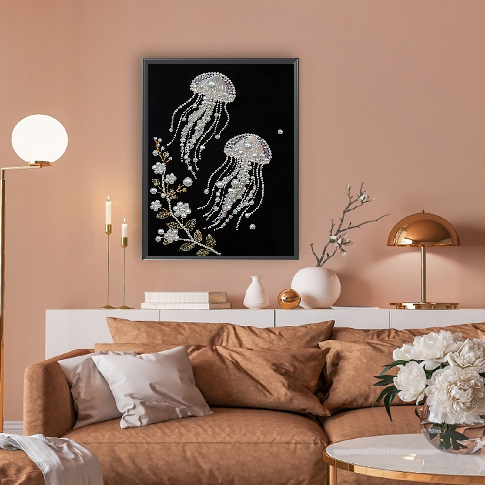Pink Jellyfish Special Shaped 5D DIY Partial Drill Diamond Painting Kits Wall Decor 35x45cm