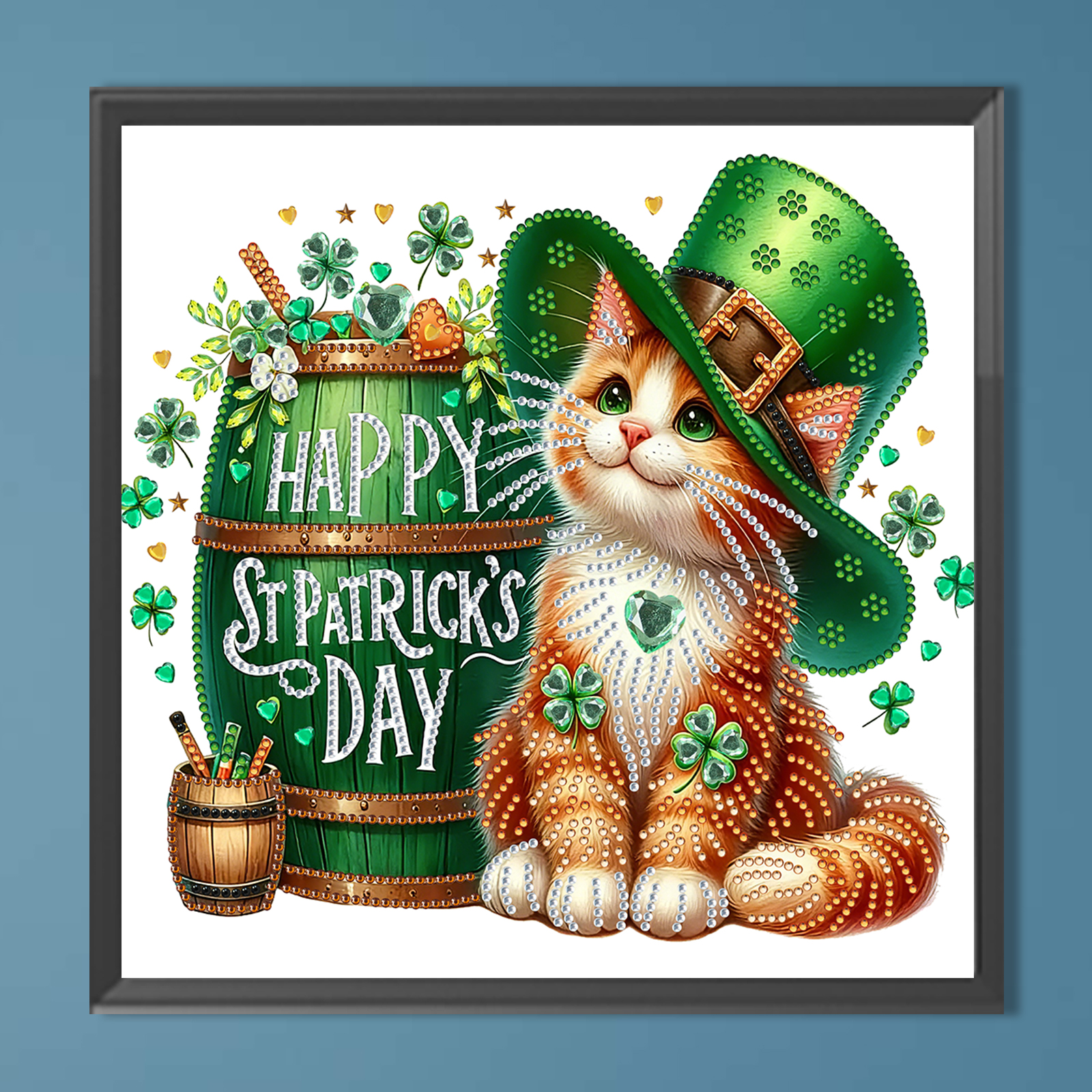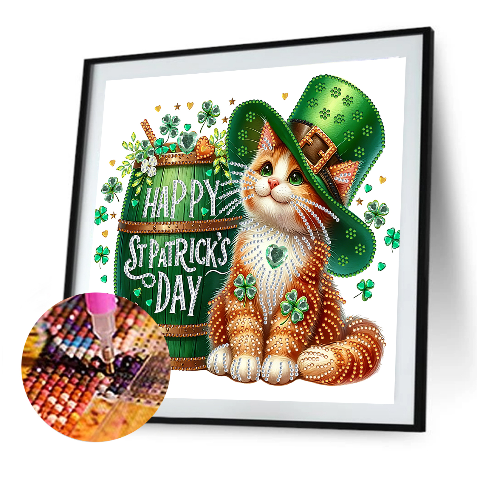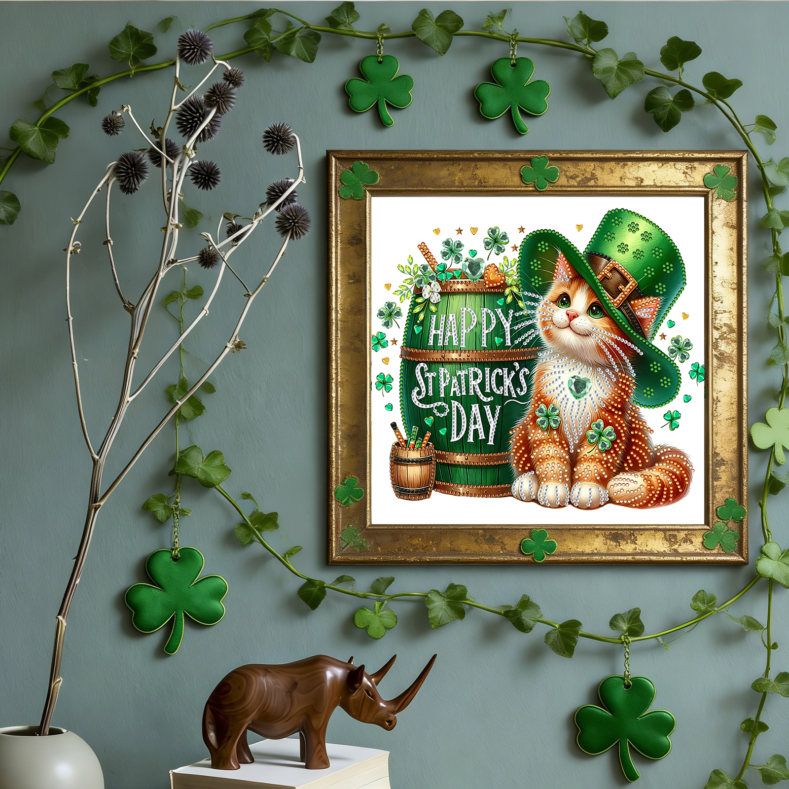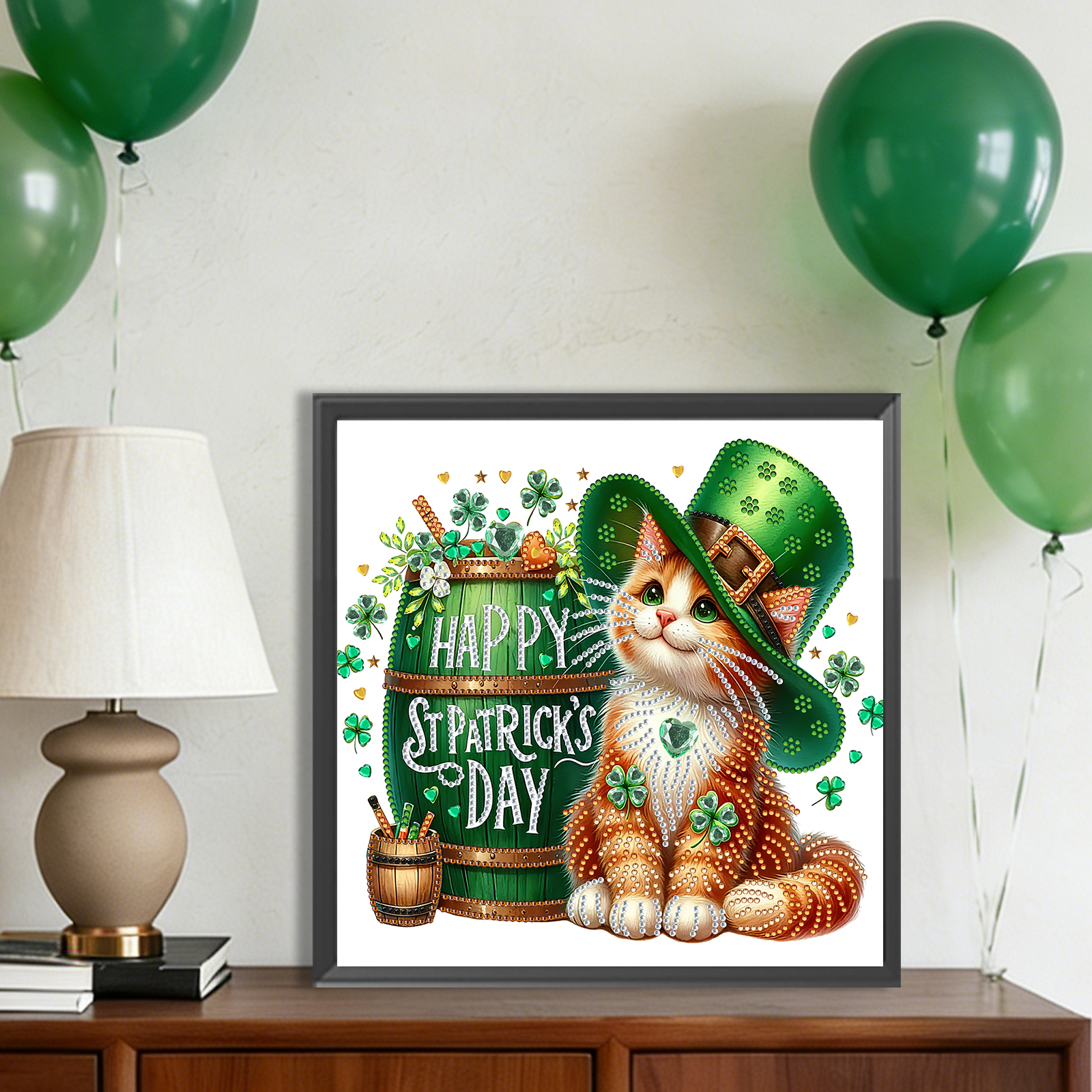 St Patricks Day Cat Special Shaped 5D DIY Partial Drill Diamonds Dots Gem Art Kits for Adults Beginners Home Decor Diamonds Paintings Gem Art 11.81 X11.81inch