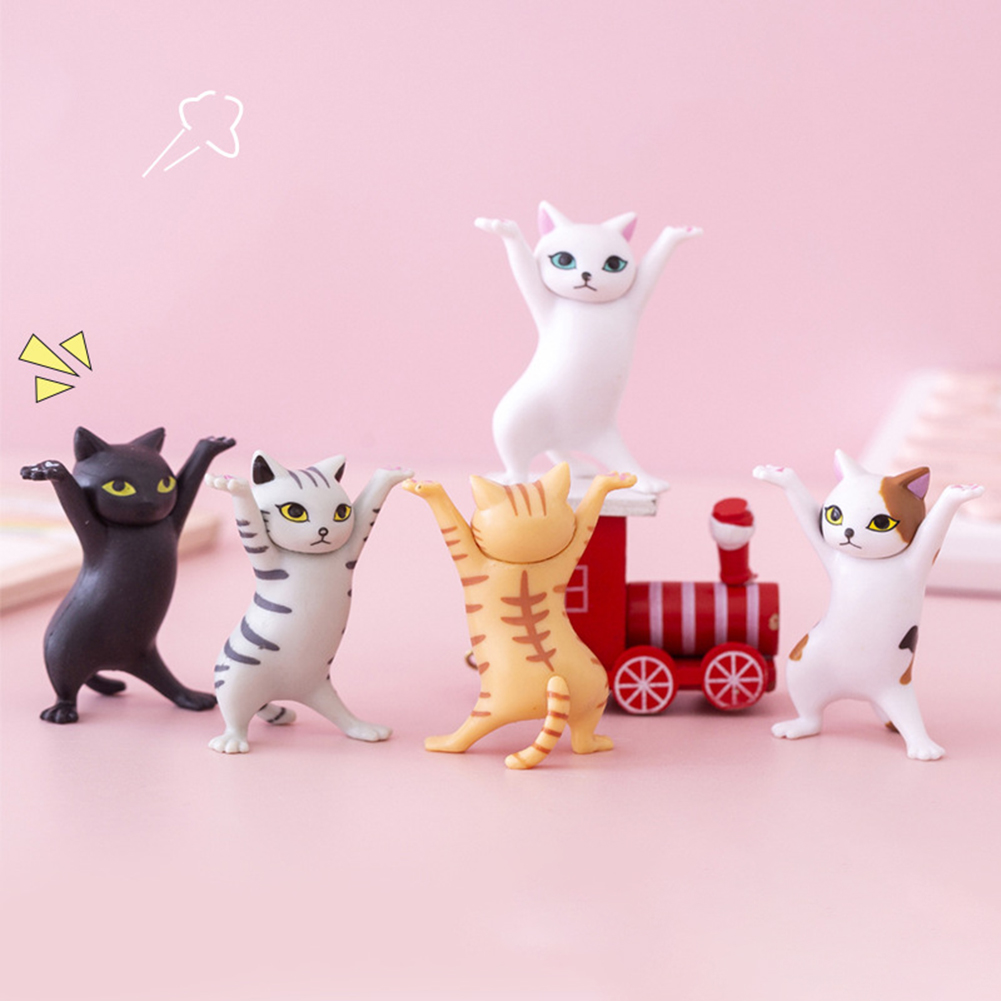 Cartoon Cat Pen Holder Resin Dancing Kitten Sculpture Office Home Decor