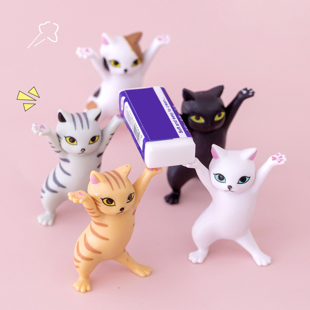 Cat Pen Holder Weightlifting Cat Carrying Coffin Bracket Kids Adult Cute Doll Animal Kitty Statue Home Decoration