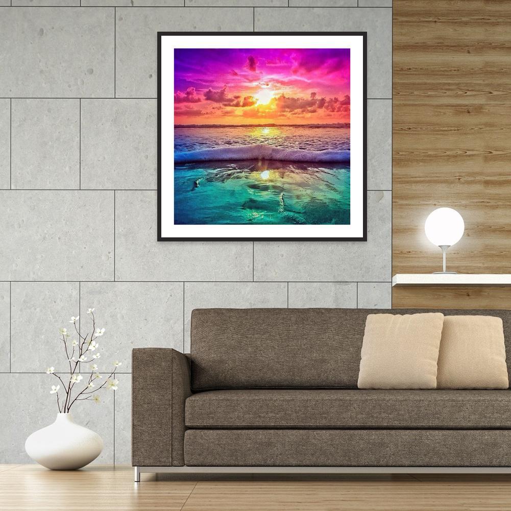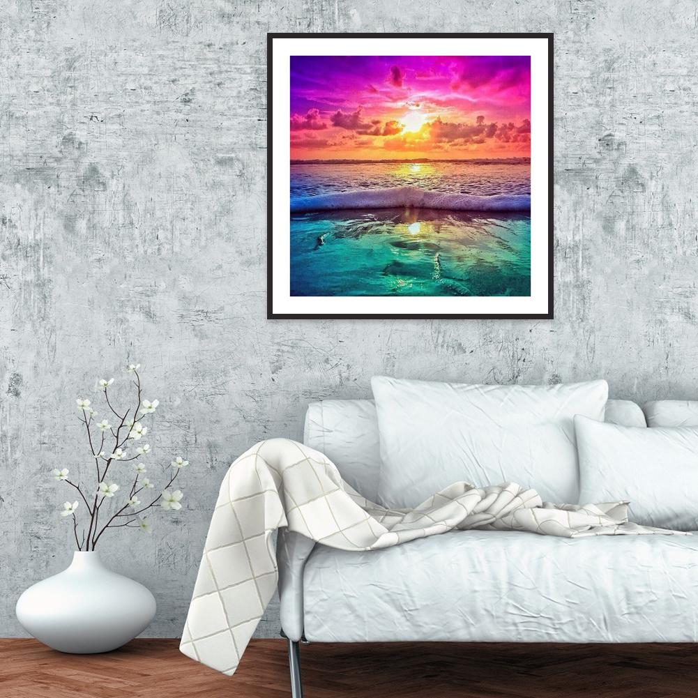 5D DIY Full Drill Diamond Painting Sunset Seaside Cross Stitch Embroidery Mosaic Kit Needlework Set Home Decoration
