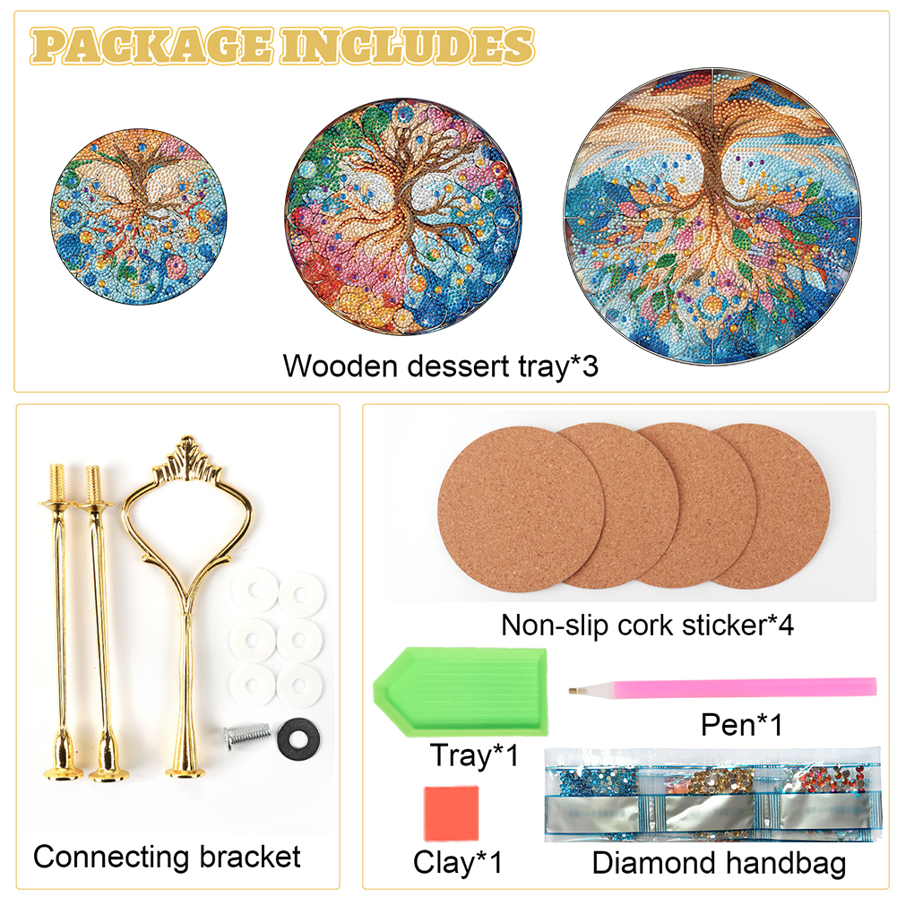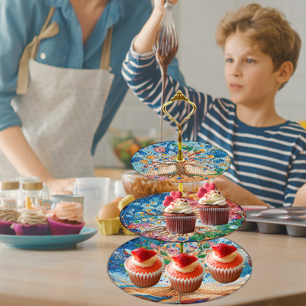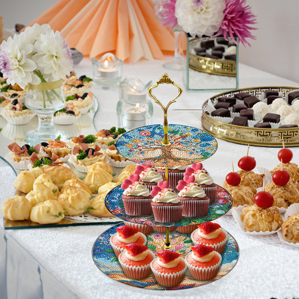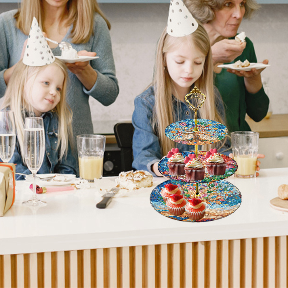3 Tier Tree Of Life Round Diamond Painting Tray Food Plate for Adults Beginners