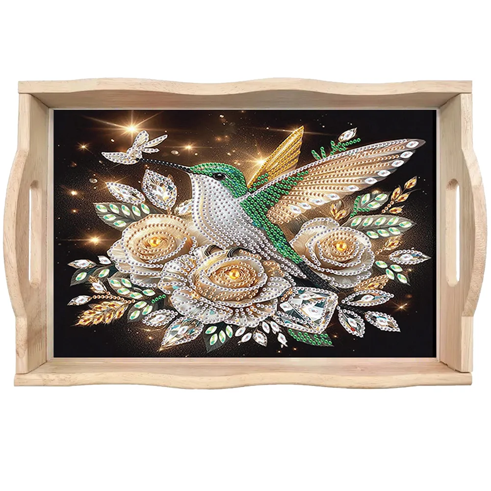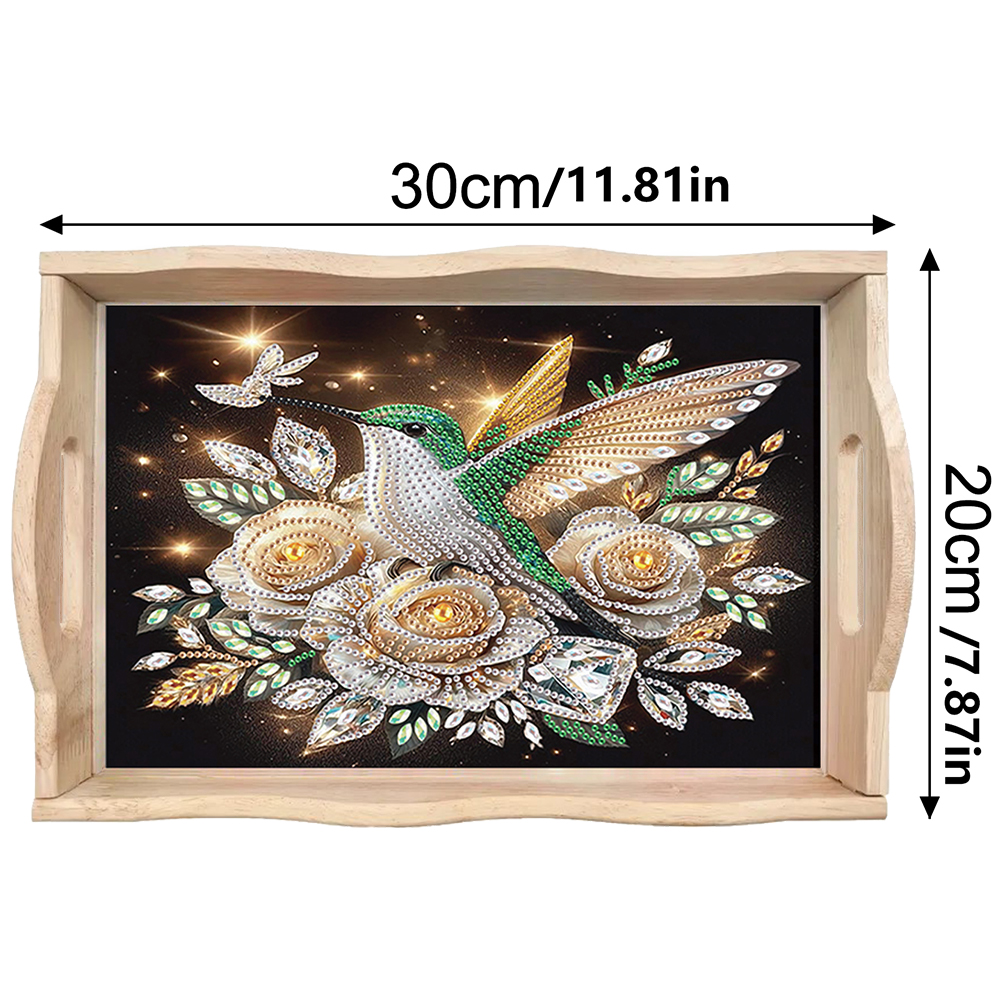 5D DIY Flower Hummingbird Diamond Painting Wooden Serving Tray with Handle for Desk