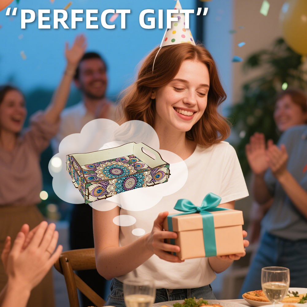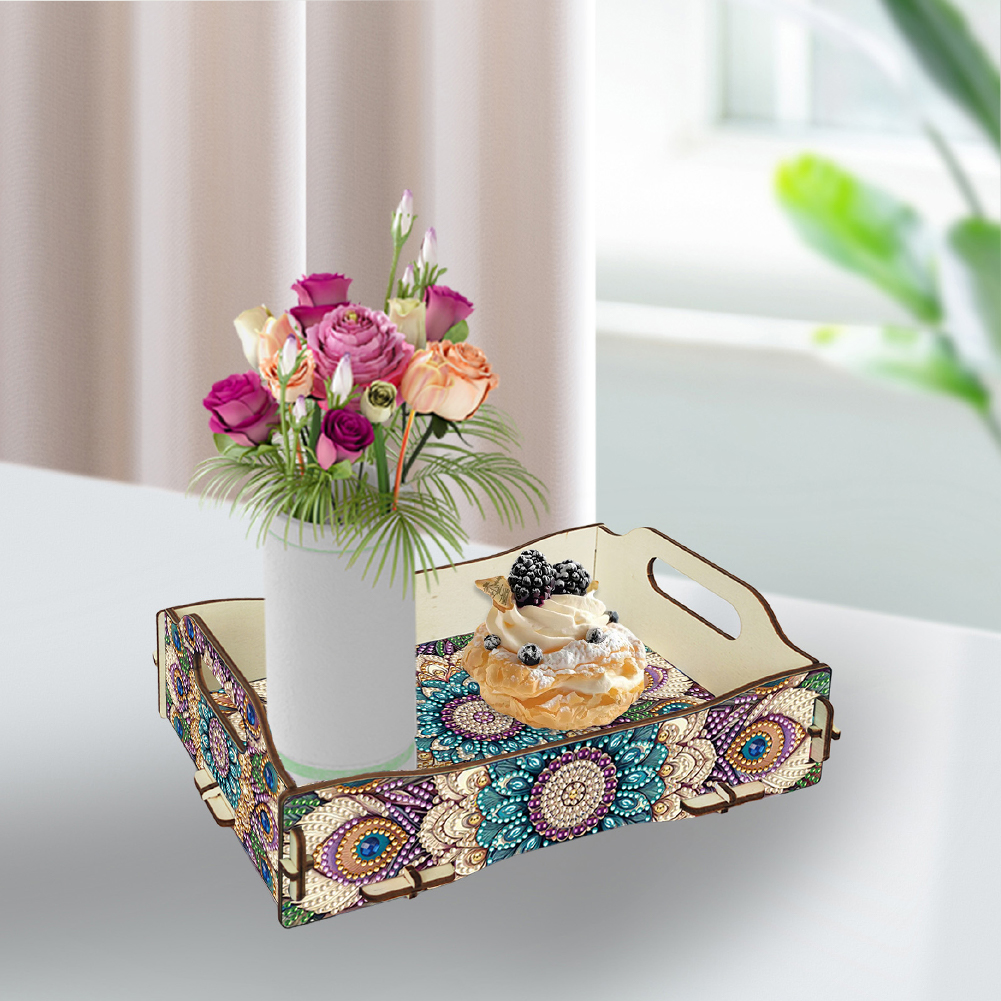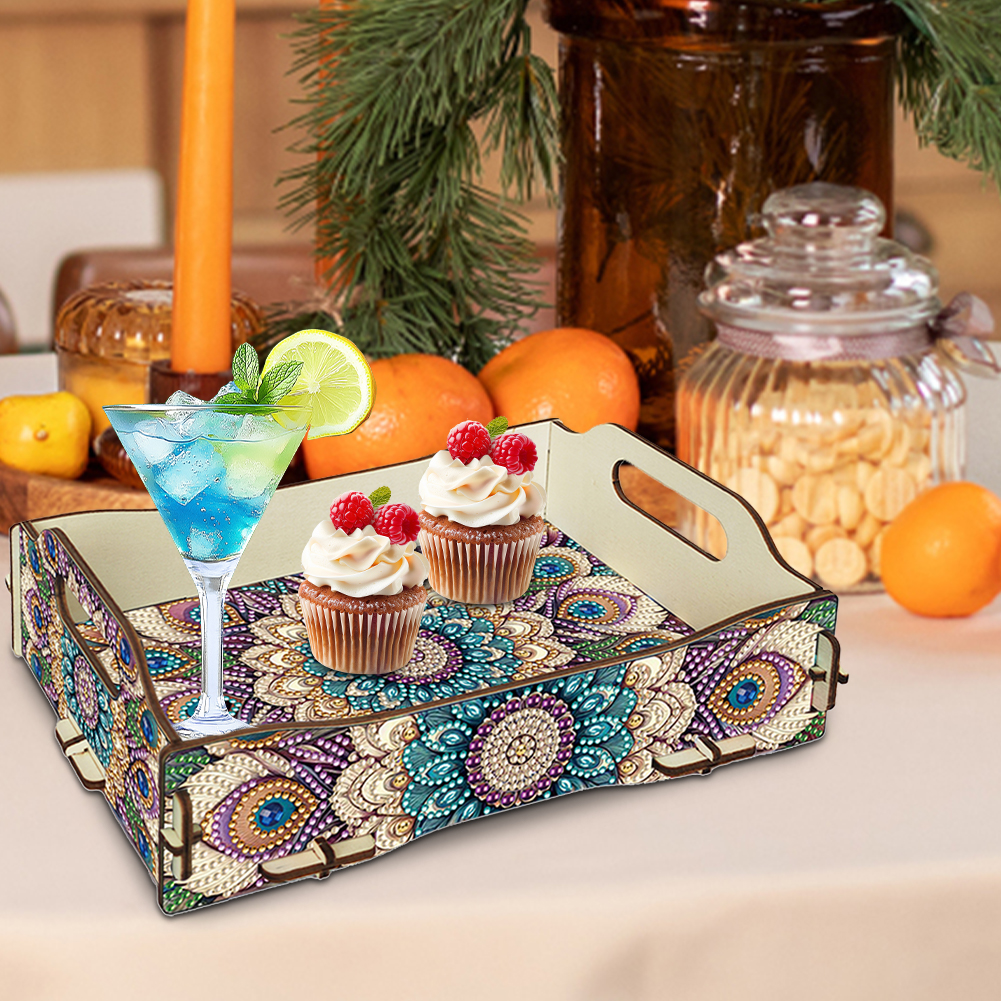 5D DIY Mandala Diamond Painting Wooden Serving Tray with Handle for Coffee Table