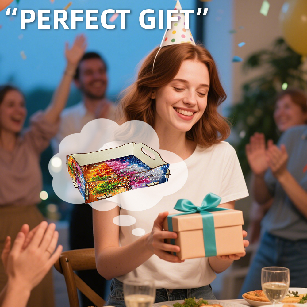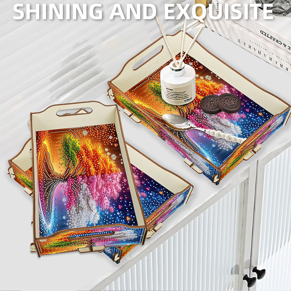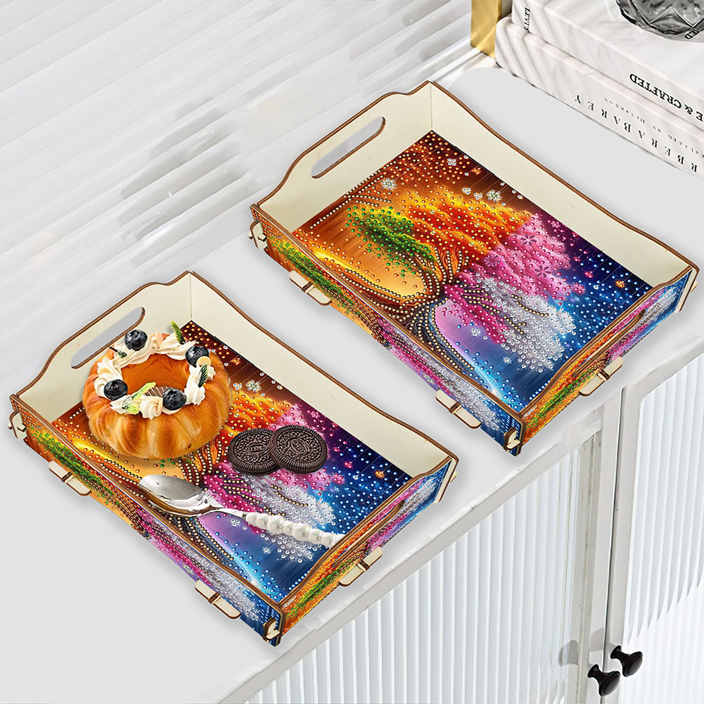 5D DIY Tree Of Life Diamond Painting Serving Tray with Handle for Coffee Table