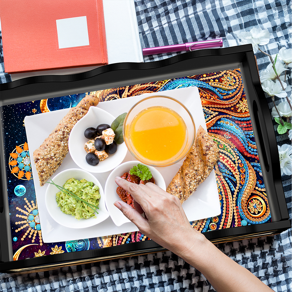 1. Multifunctional Elegance: From presenting delectable meals on your dining table to serving lazy Sunday breakfasts in bed, this 5D DIY diamond painting serving tray offers versatile usage for any occasion, ensuring both functionality and sophistication in your living space.
