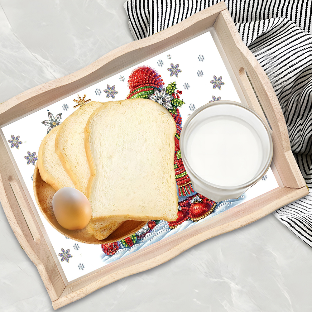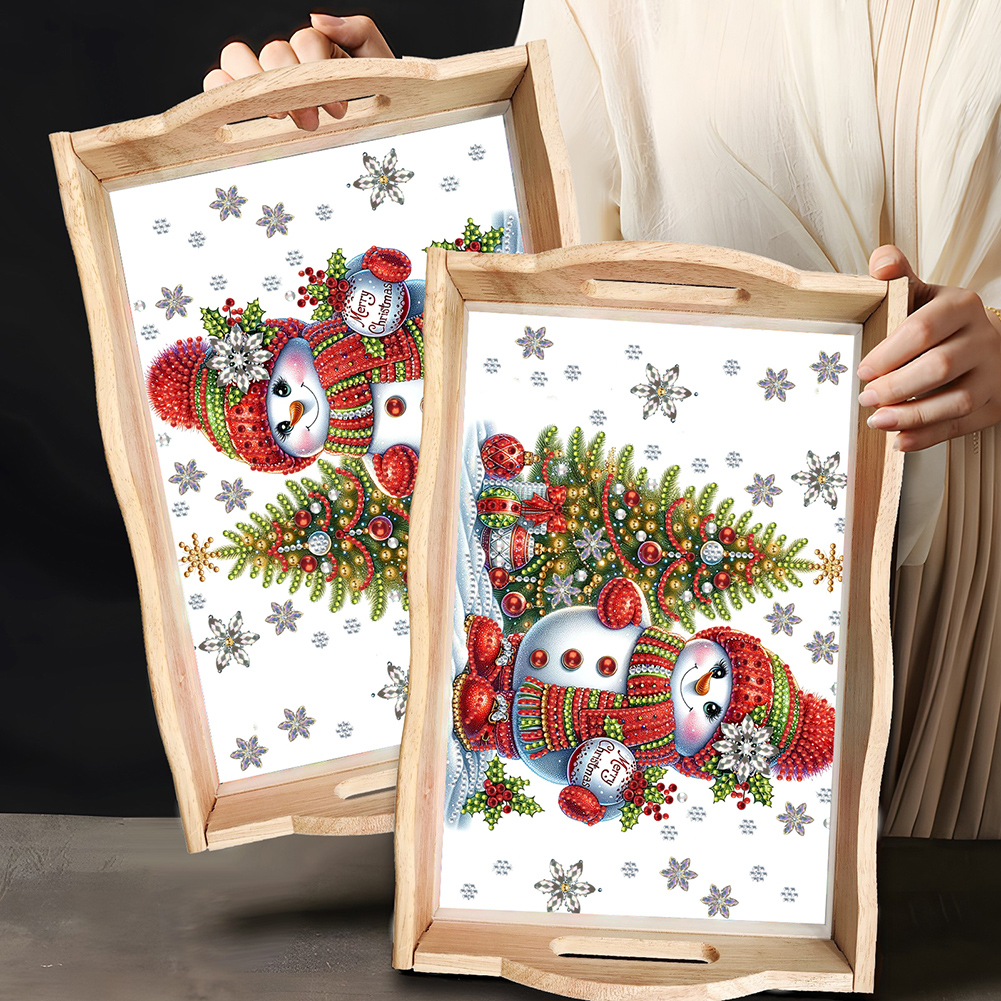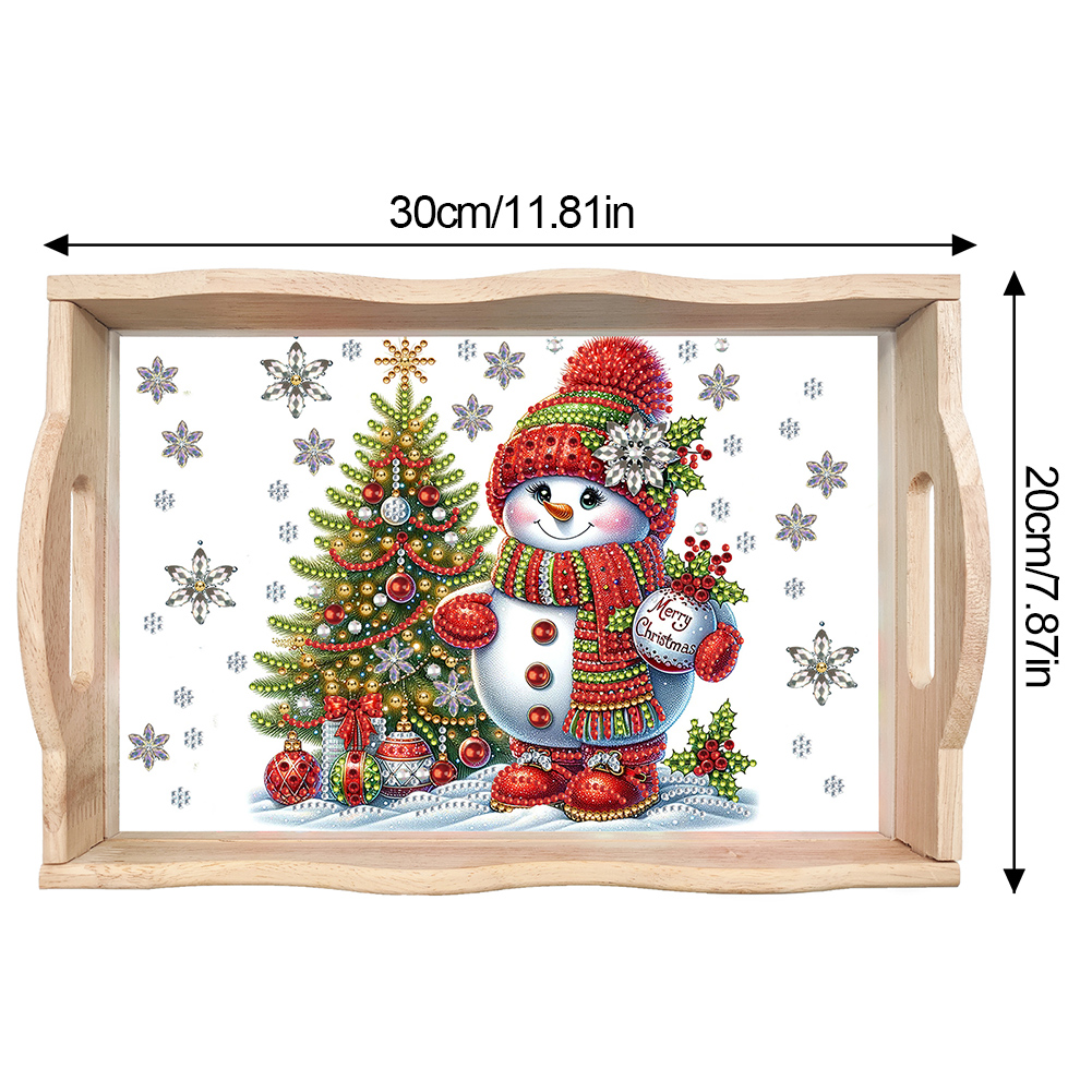 DIY Christmas Snowman Diamond Painting Wooden Serving Tray Diamond Art Dining Plate(30*20cm)