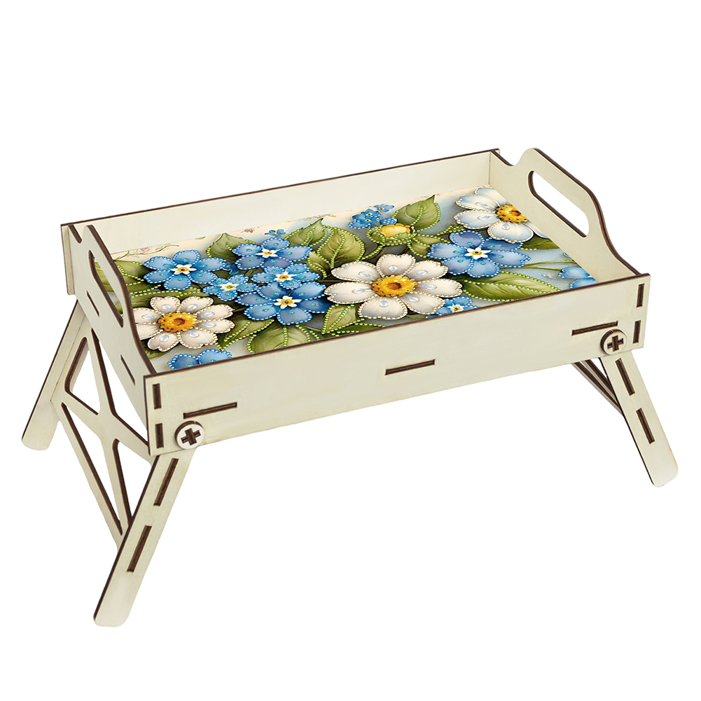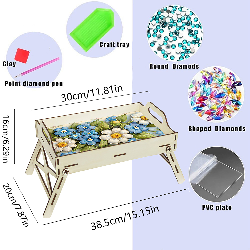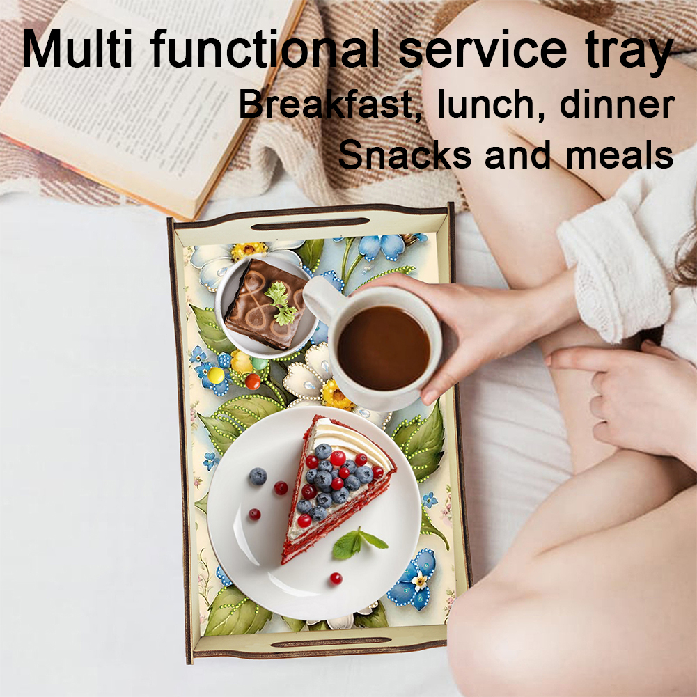 DIY Diamond Painted Dining Plate with Handle Wooden Food Tray Home Decor Gift