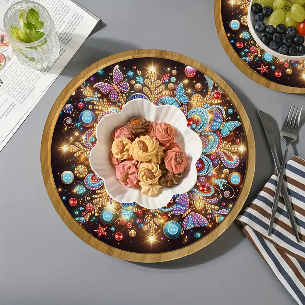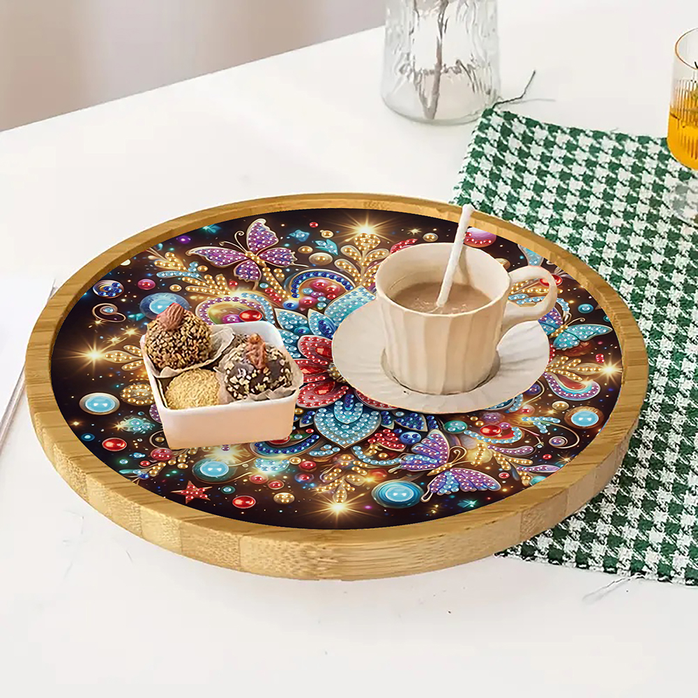 DIY Diamond Painting Kit Round Wooden Tray Diamond Painting Tray (Mandala E)