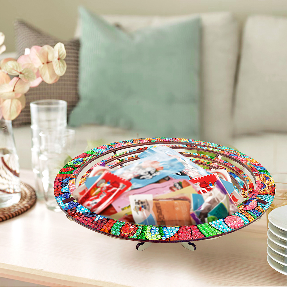 DIY Owl Diamond Painting Wooden Serving Tray Decorative Diamond Painting Dining Plate