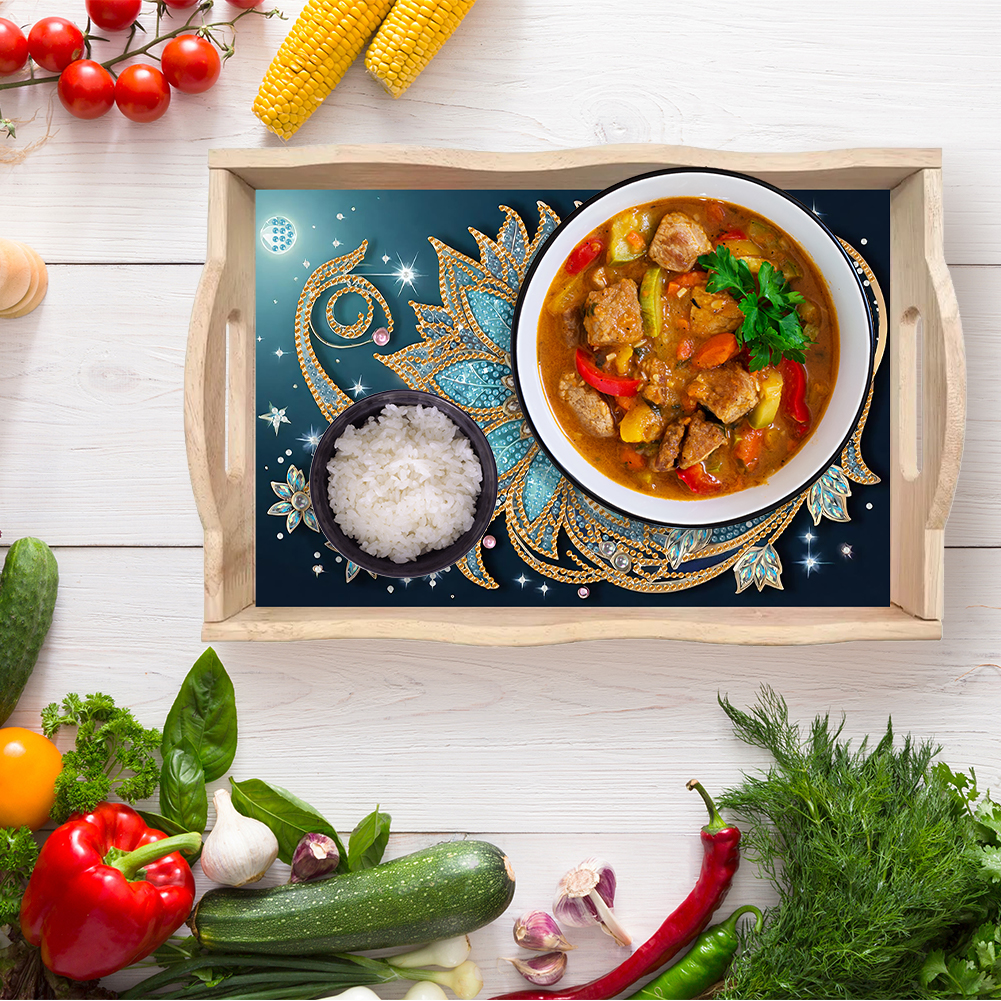 1. Multifunctional Elegance: From presenting delectable meals on your dining table to serving lazy Sunday breakfasts in bed, this 5D DIY diamond painting serving tray offers versatile usage for any occasion, ensuring both functionality and sophistication in your living space.