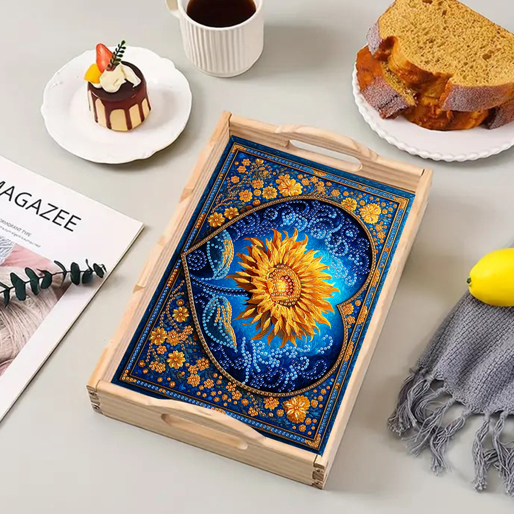 Wooden Night Sunflower 5D Diamond Painting Tray Art Craft with Handle for Desk