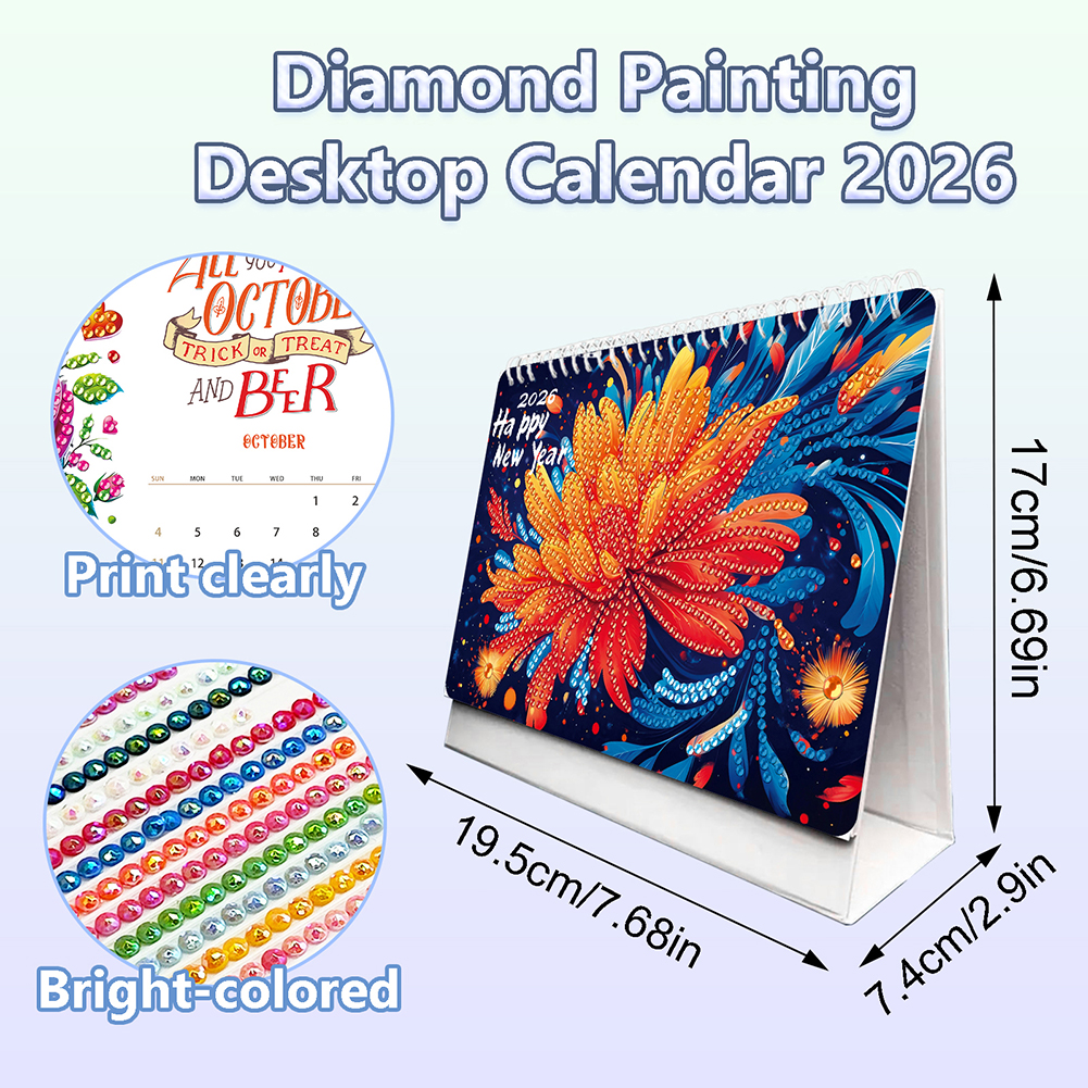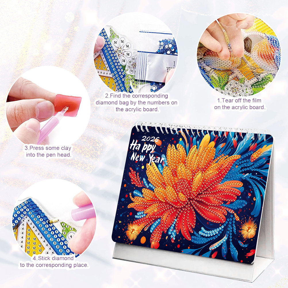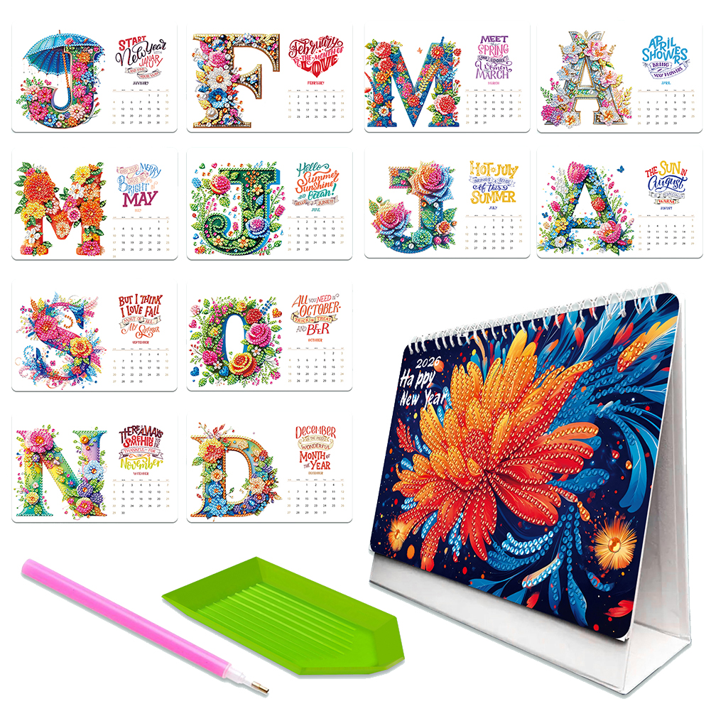 2026 Calendar Diamond Painting Kit DIY Diamond Art Desk Calendar for Home Office