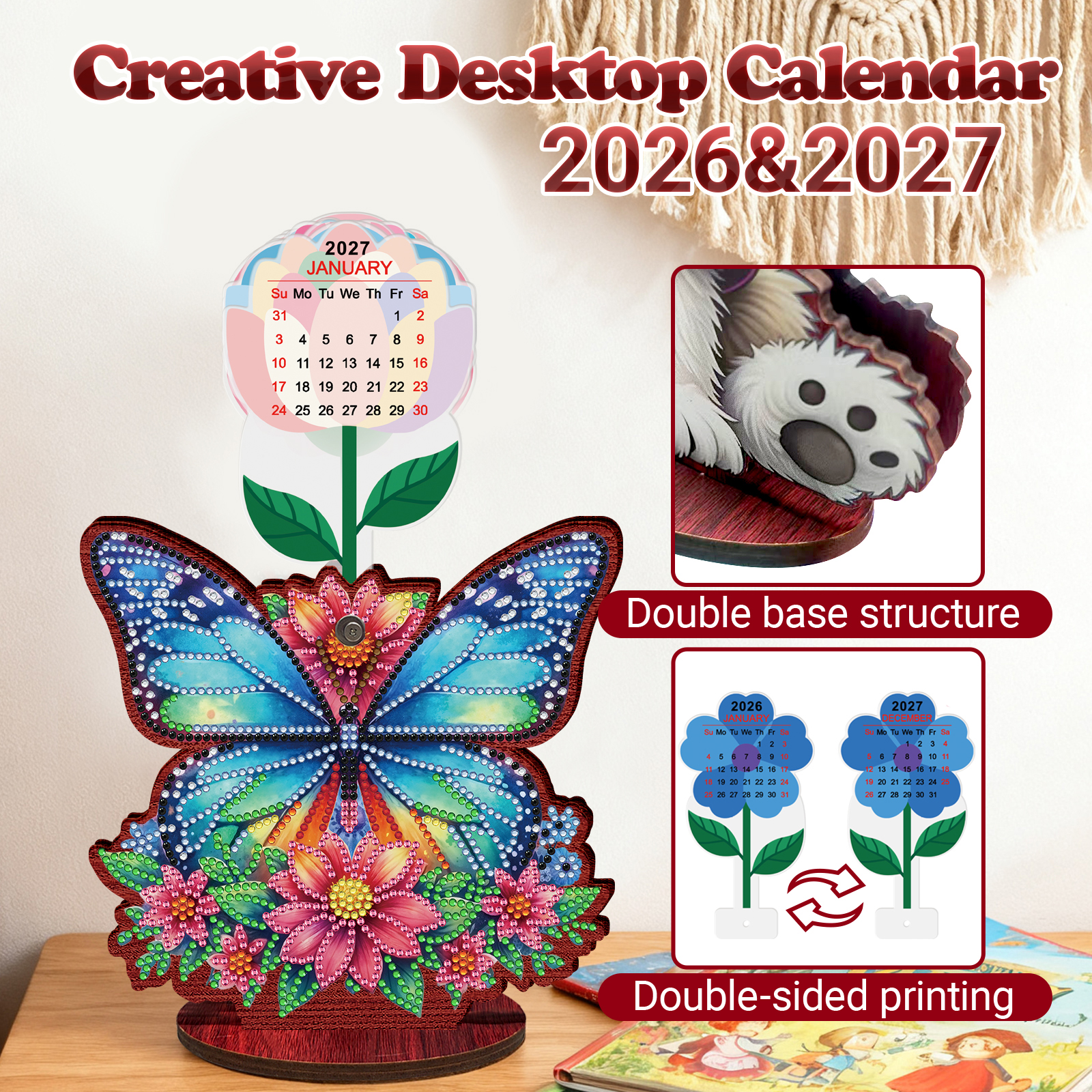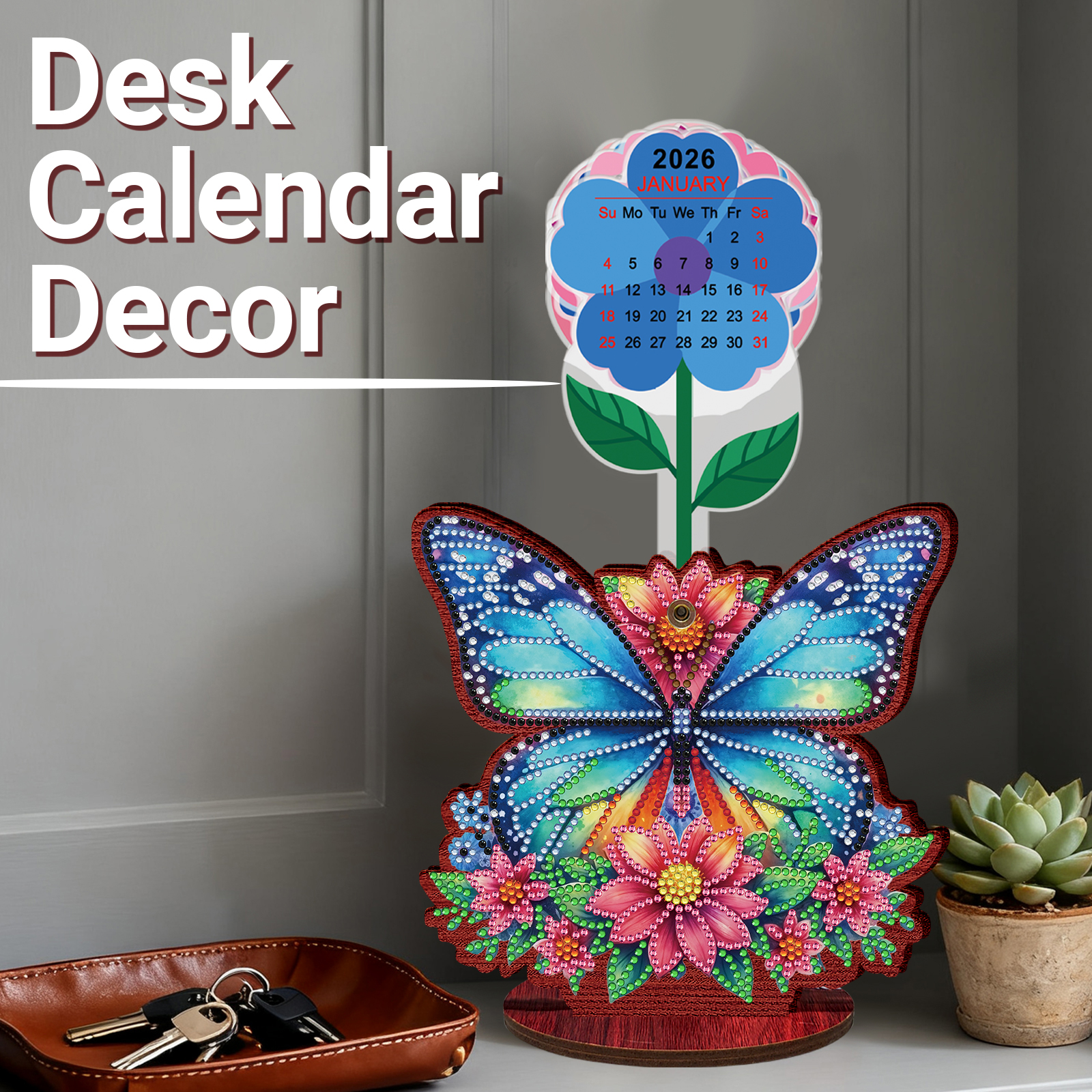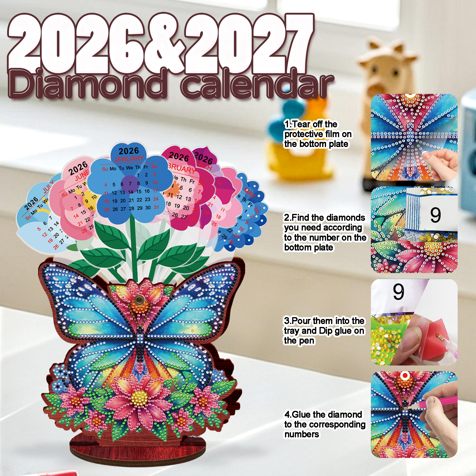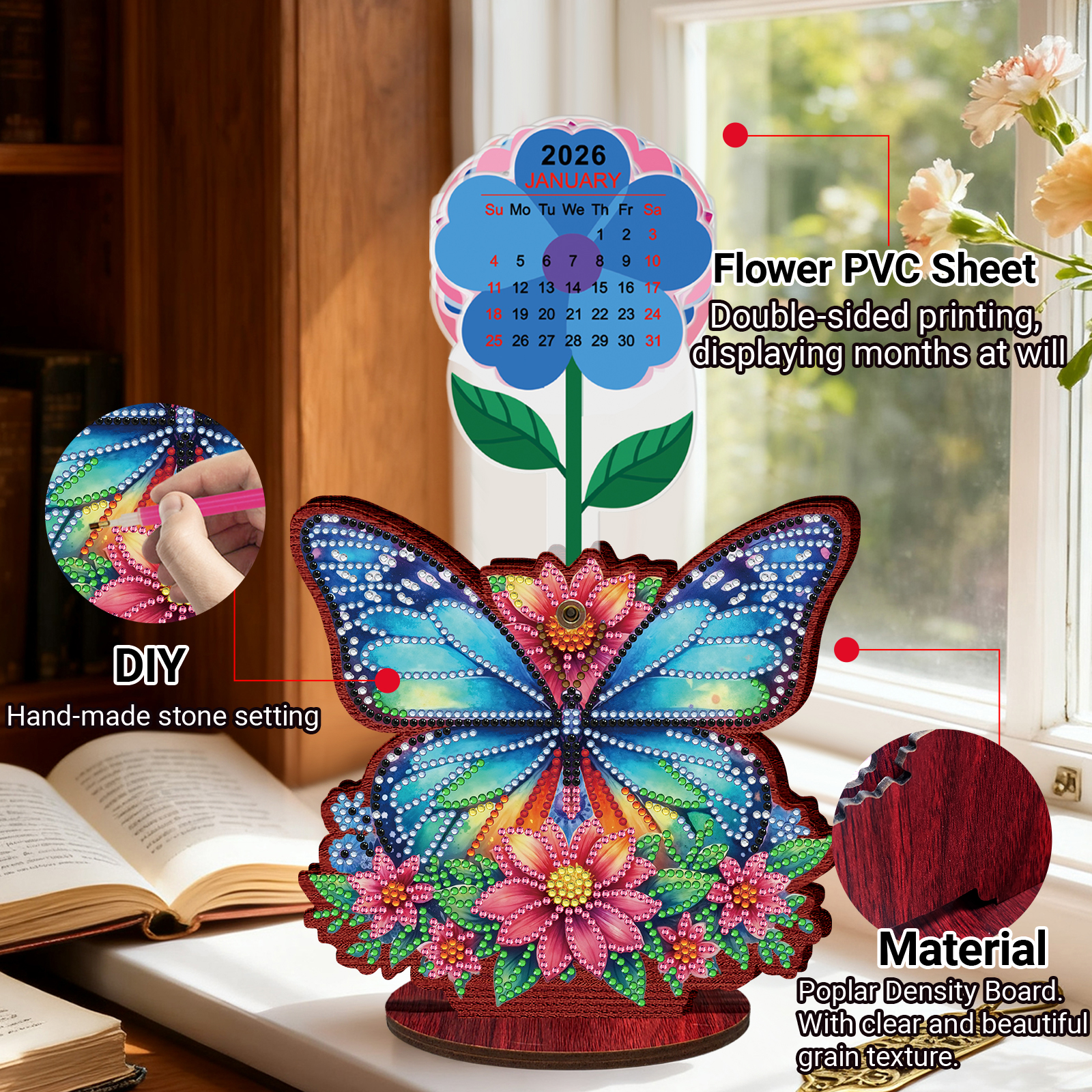 2026 Calendar DIY Diamond Art Kit Butterfly Wooden Diamond Painting Calendar