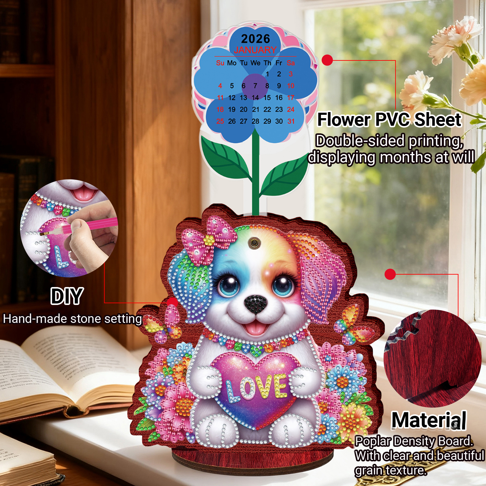 2026 Calendar DIY Diamond Painting Kit Wooden Diamond Painting Calendar