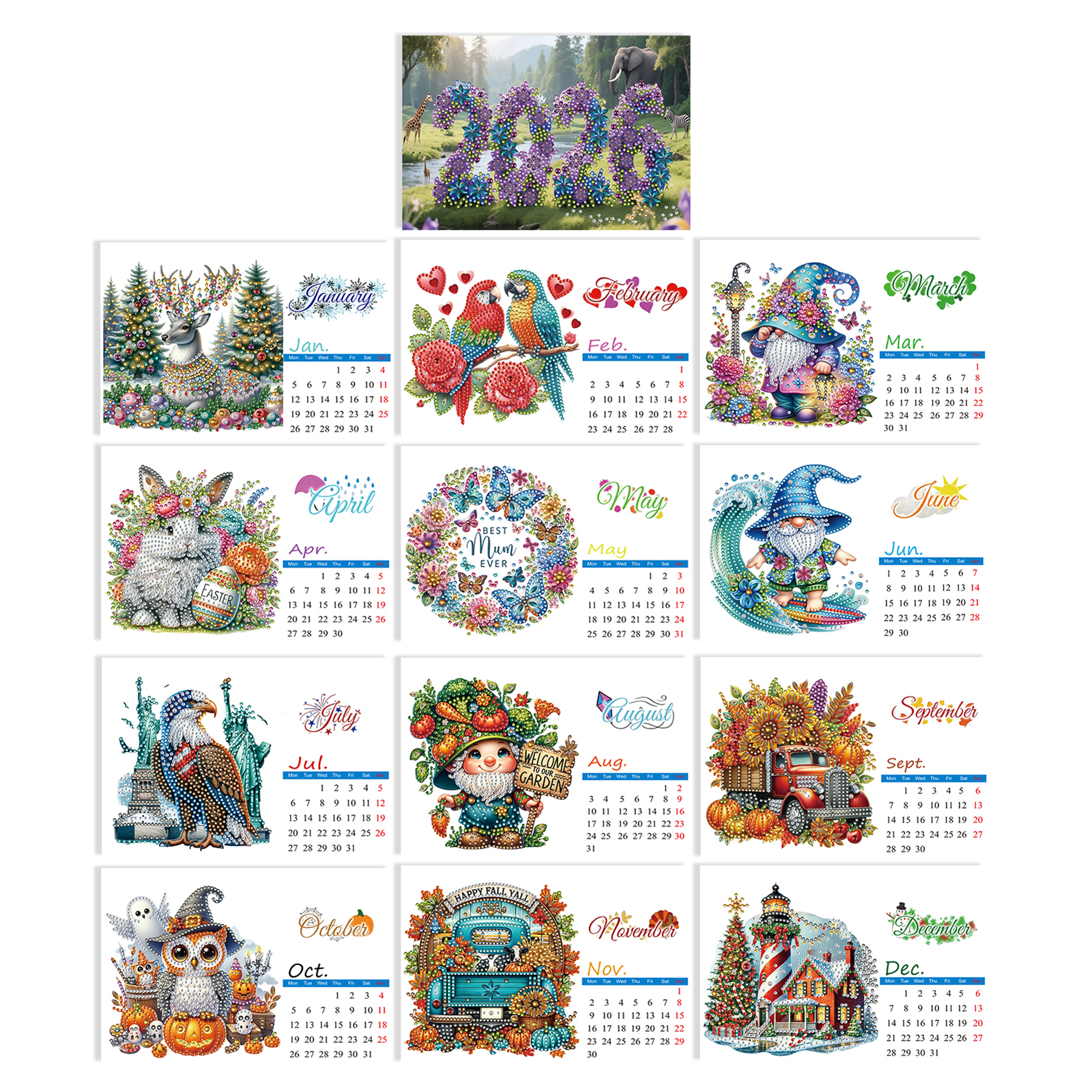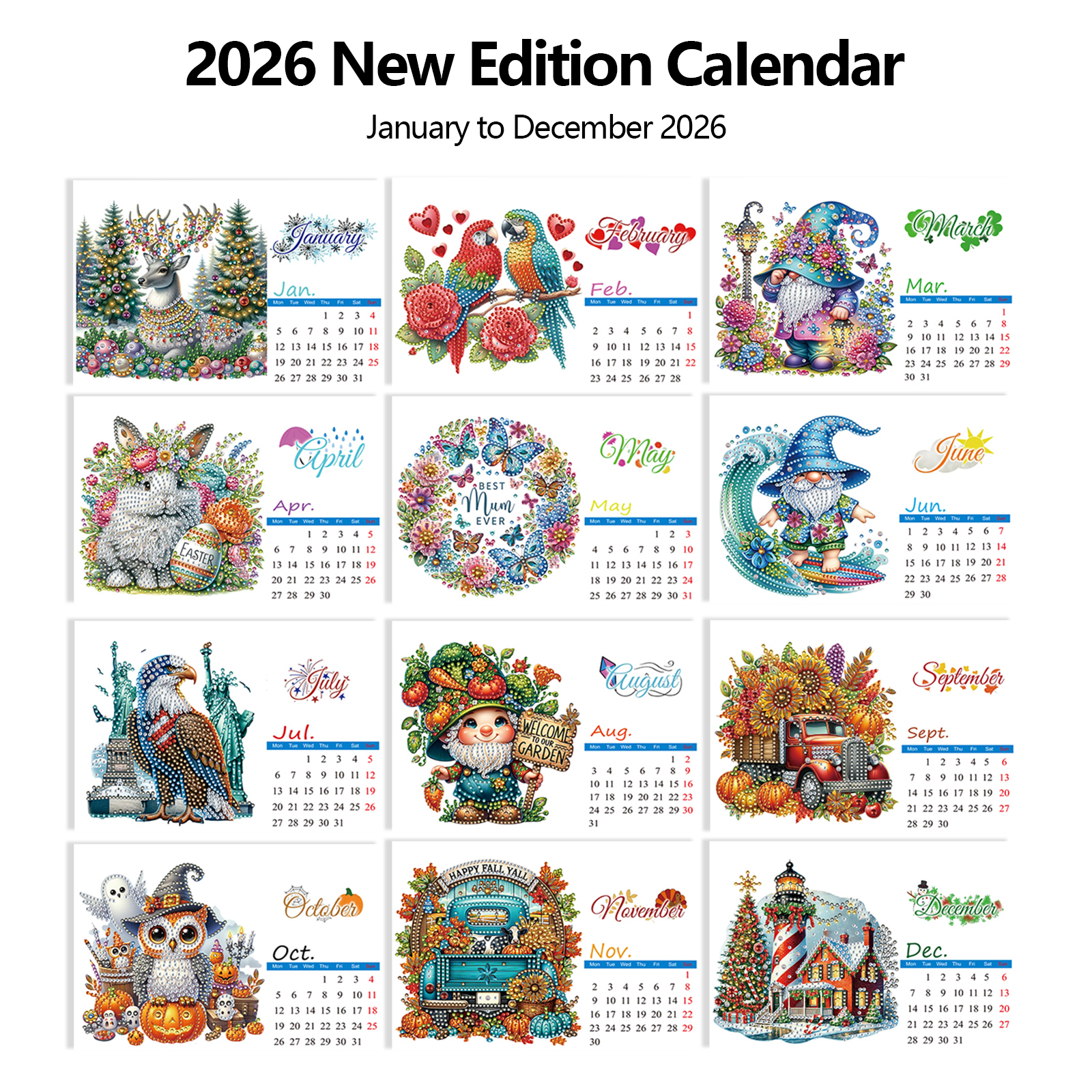 5D/DIY Calendar Crystal Painting Desk Calendars Kit Diamond Painting Calendar