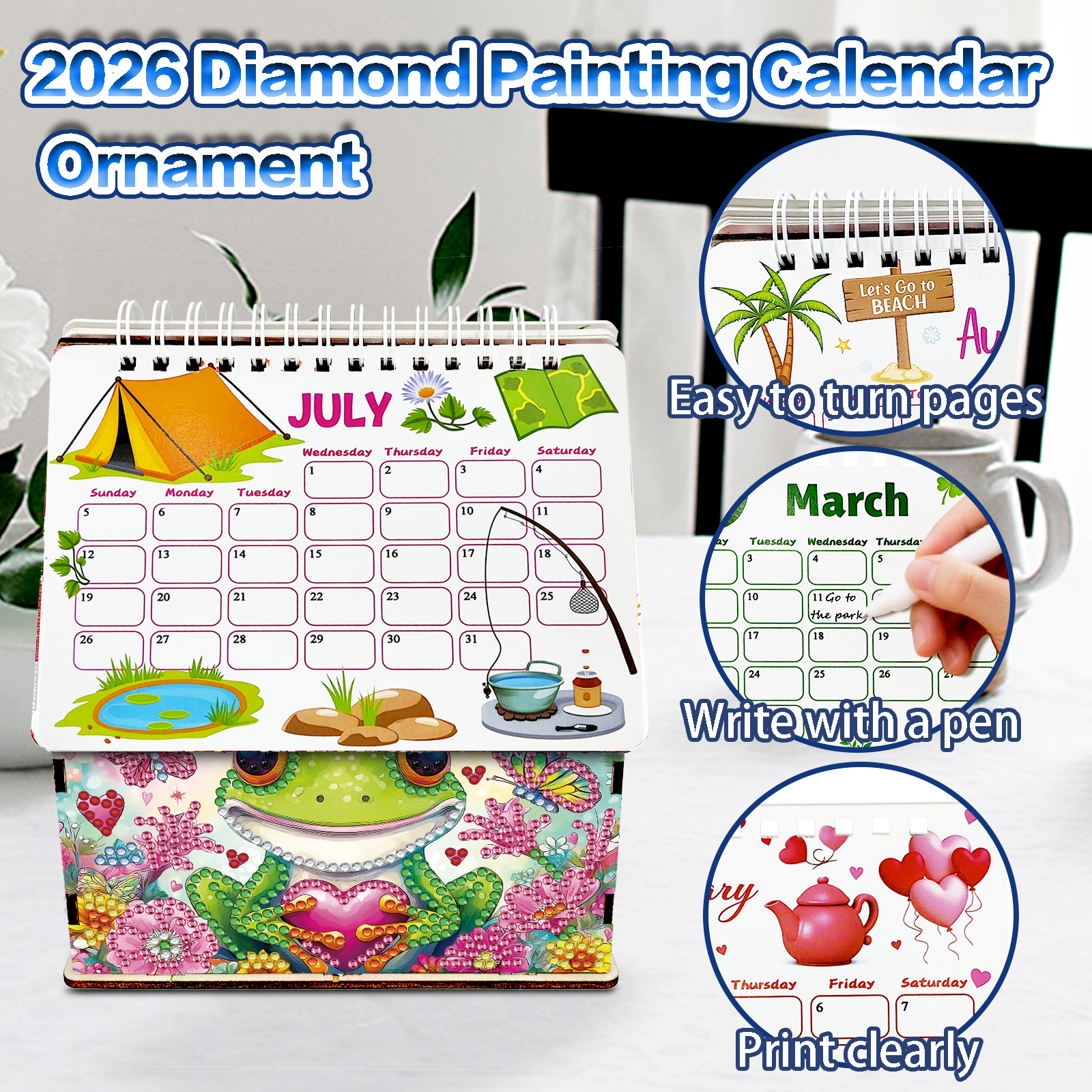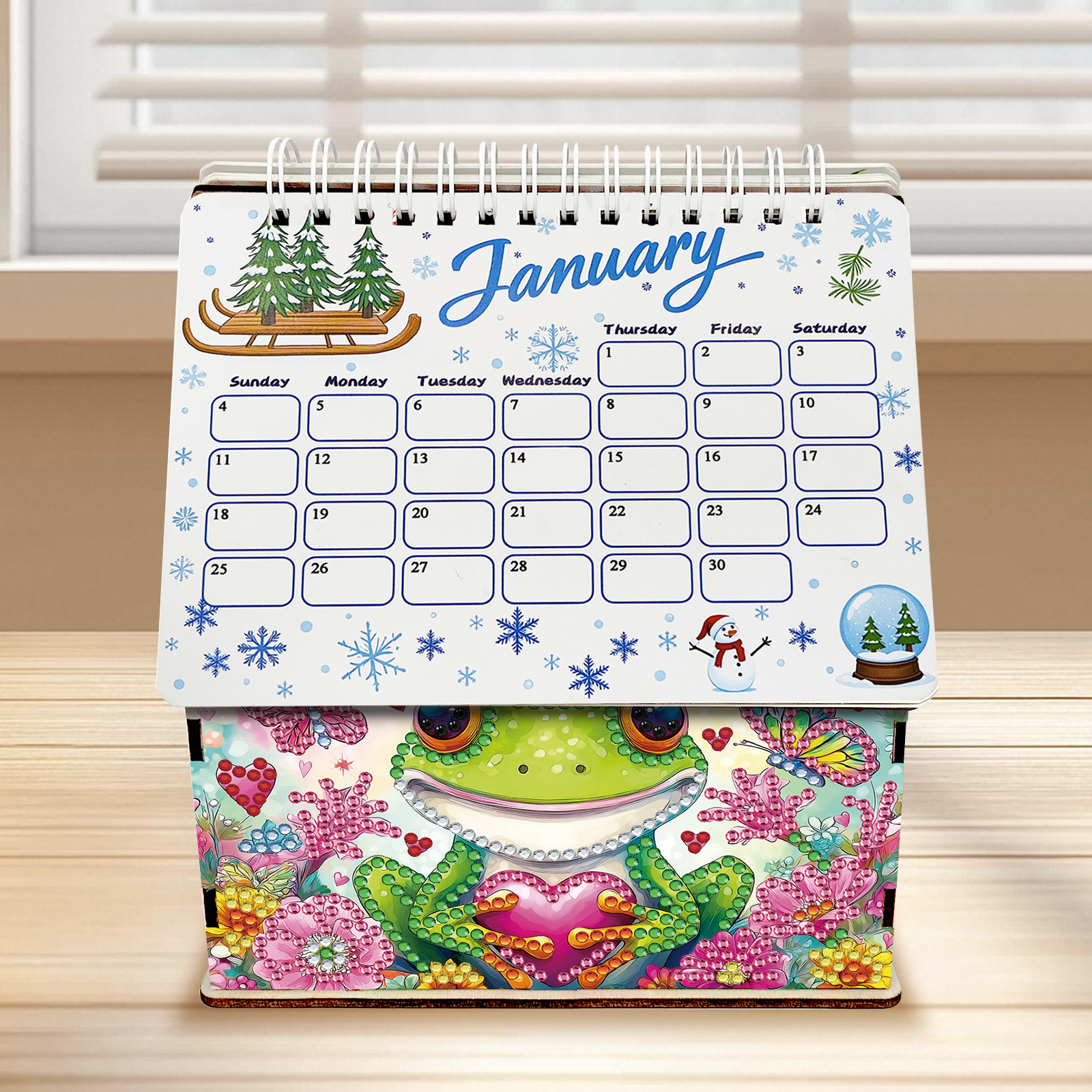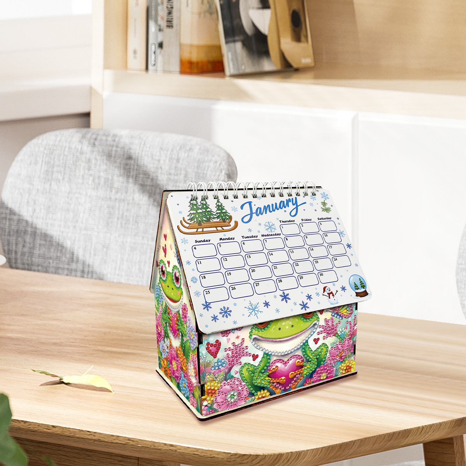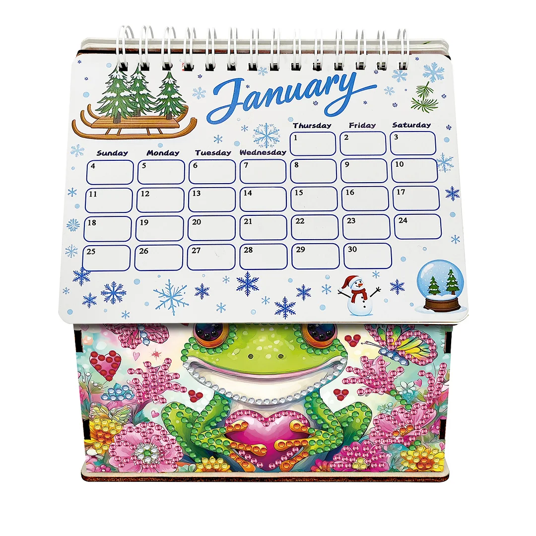 5D/DIY Calendar Crystal Painting Desk Calendars Kit Home Decorations (Frog)