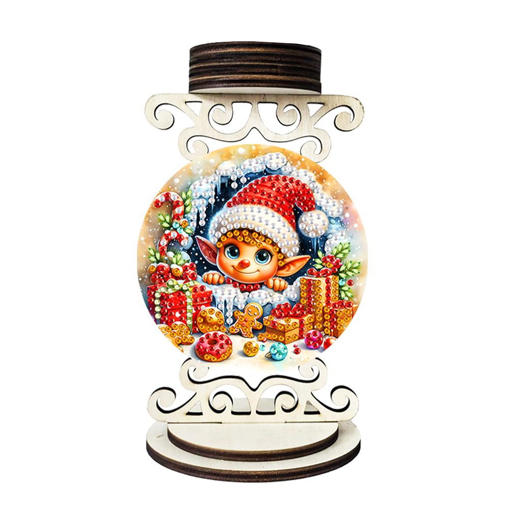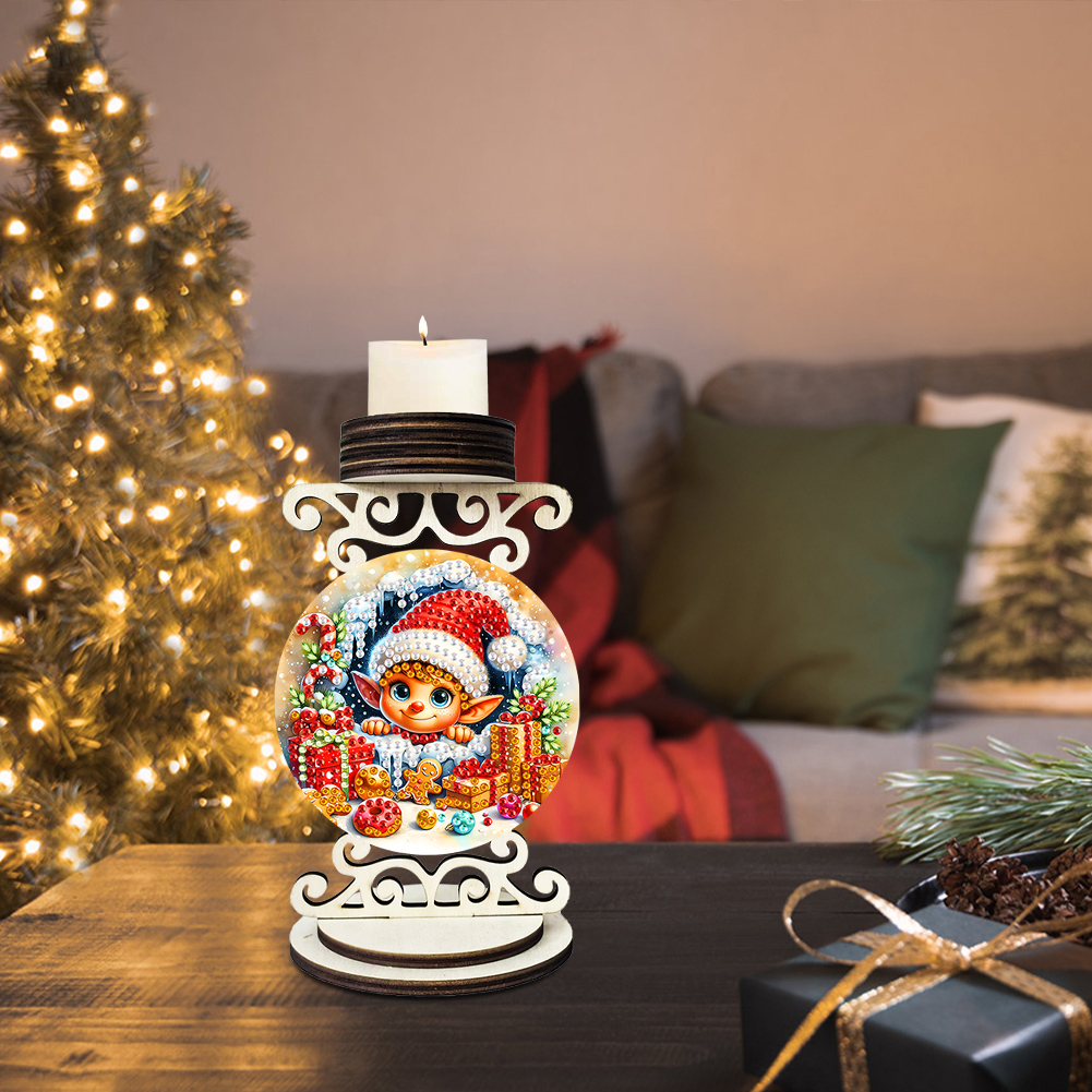5D DIY Elf Wooden Special Shaped Christmas Theme Diamond Painting Candle Holder
