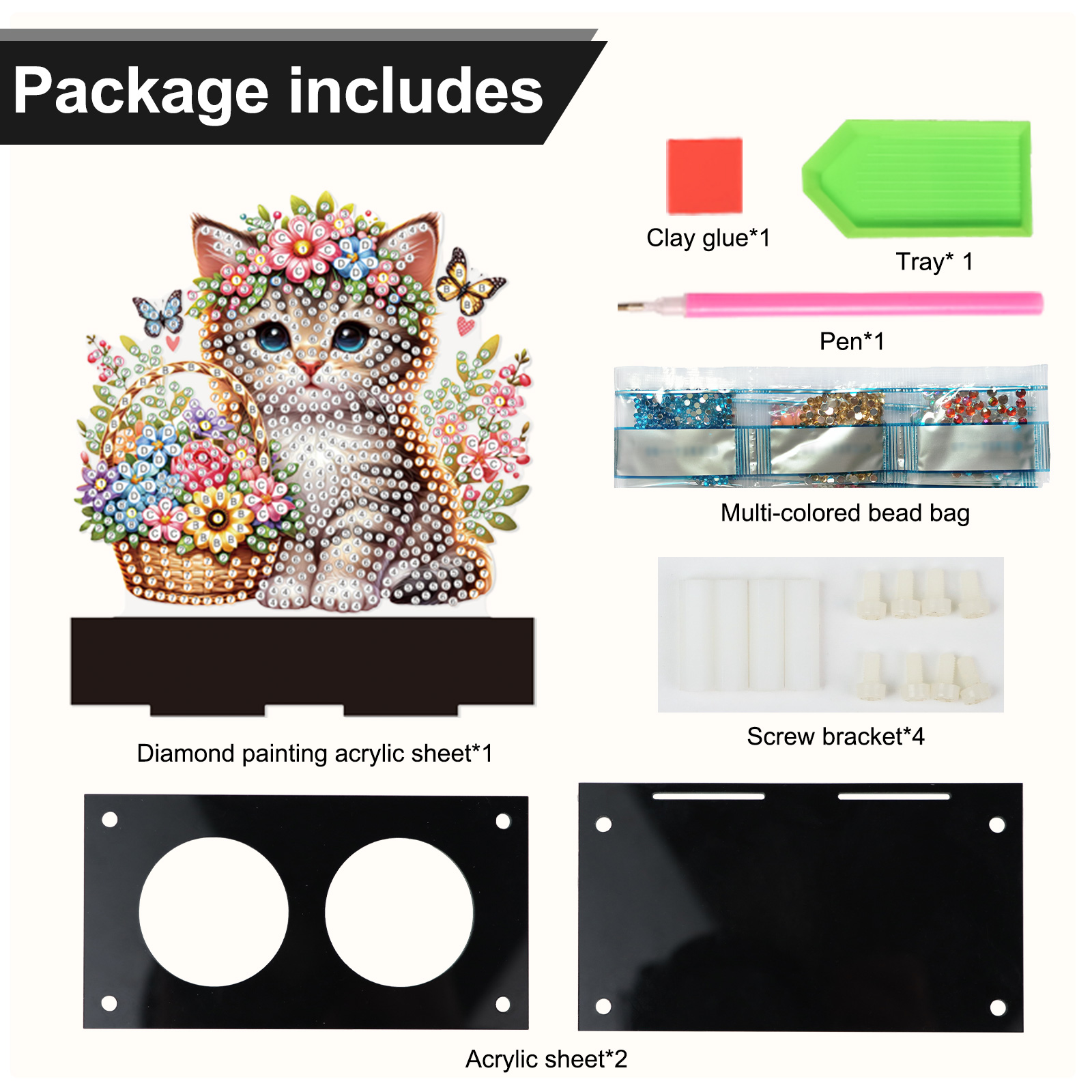 5D DIY Flower Cat Diamond Art Mini Candle Holder for Aromatherapy Art Crafts