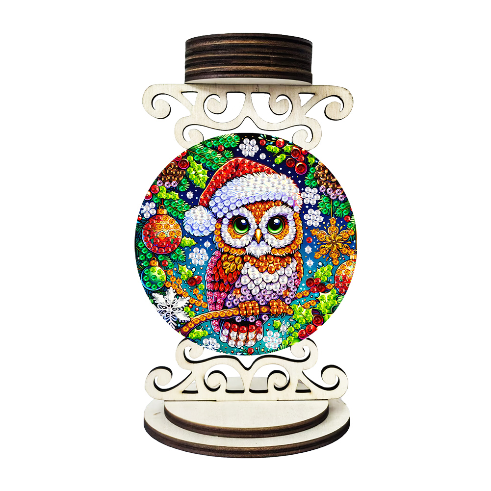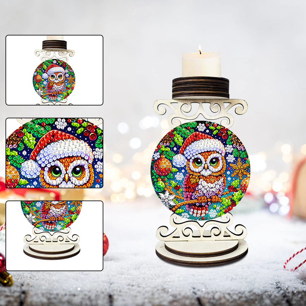 5D DIY Owl Wooden Special Shaped Christmas Theme Diamond Painting Candle Holder