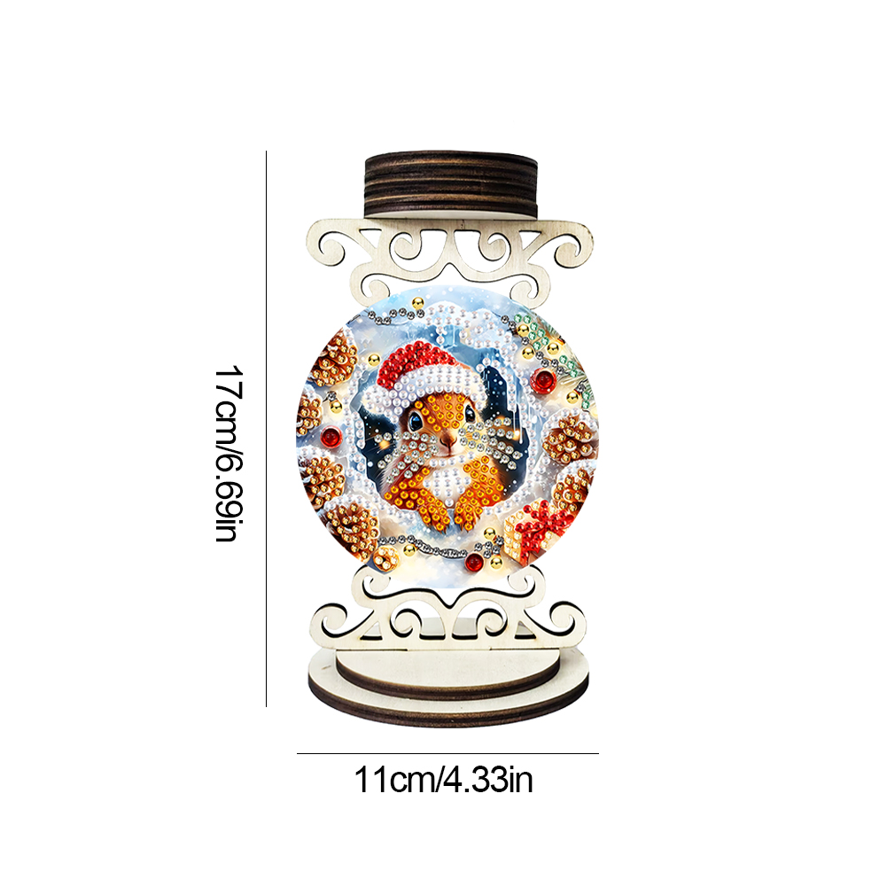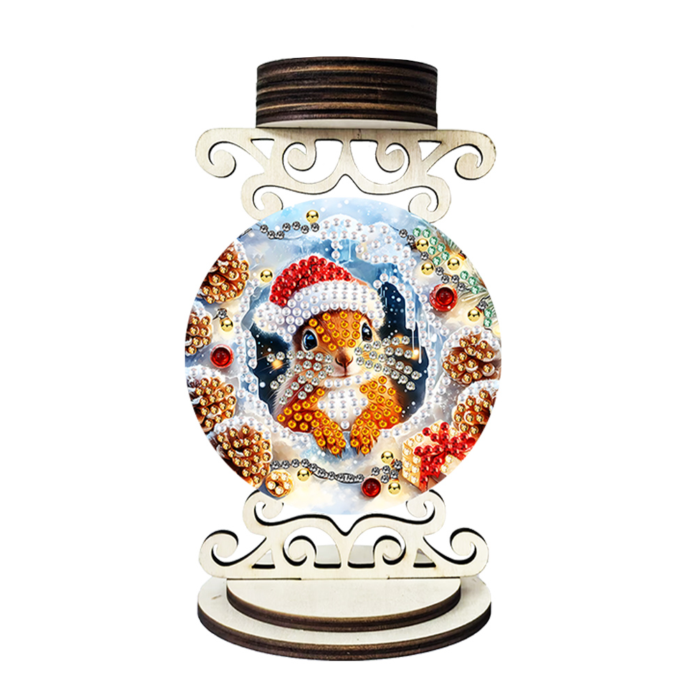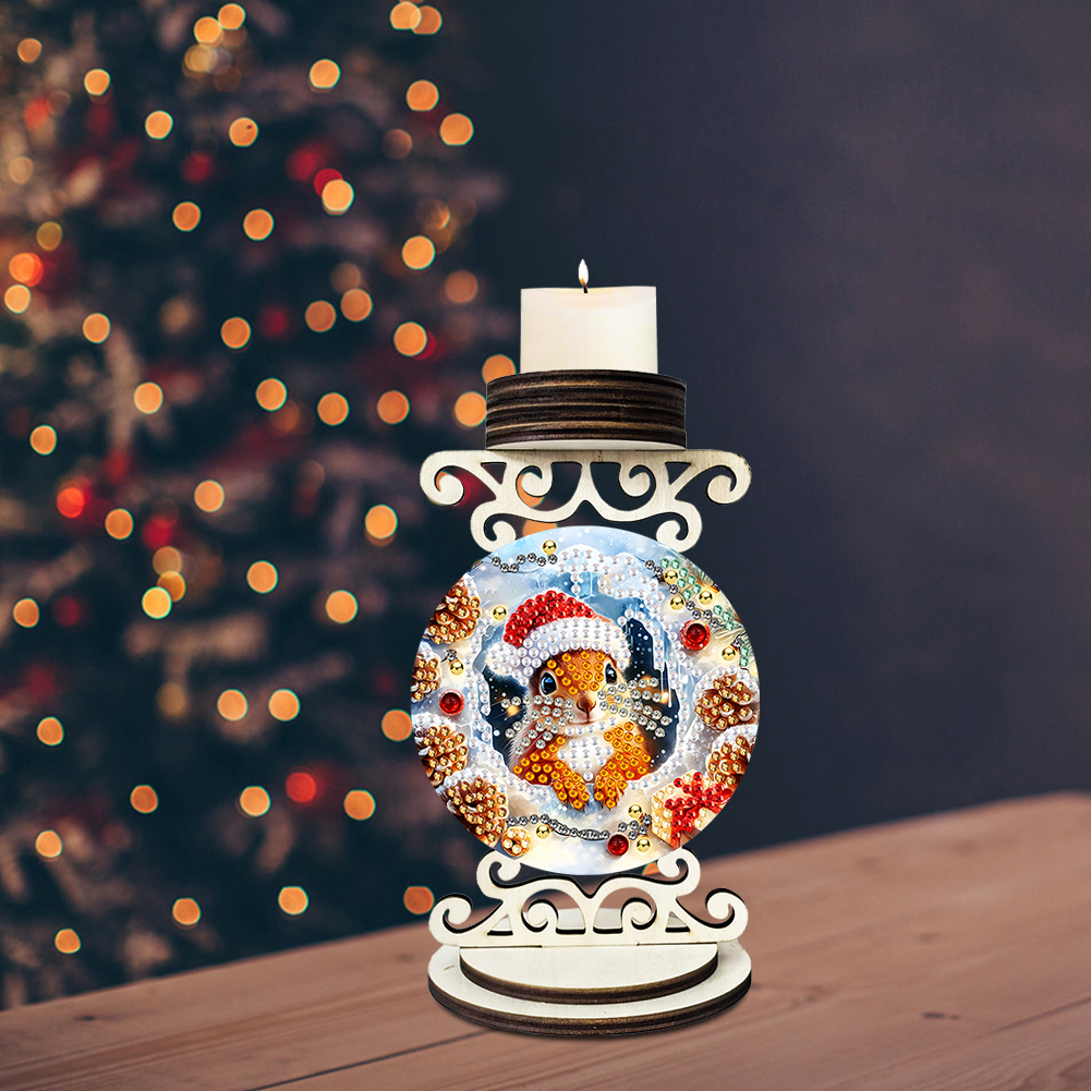 5D DIY Squirrel Wooden Special Shaped Christmas Theme Diamond Painting Candle Holder