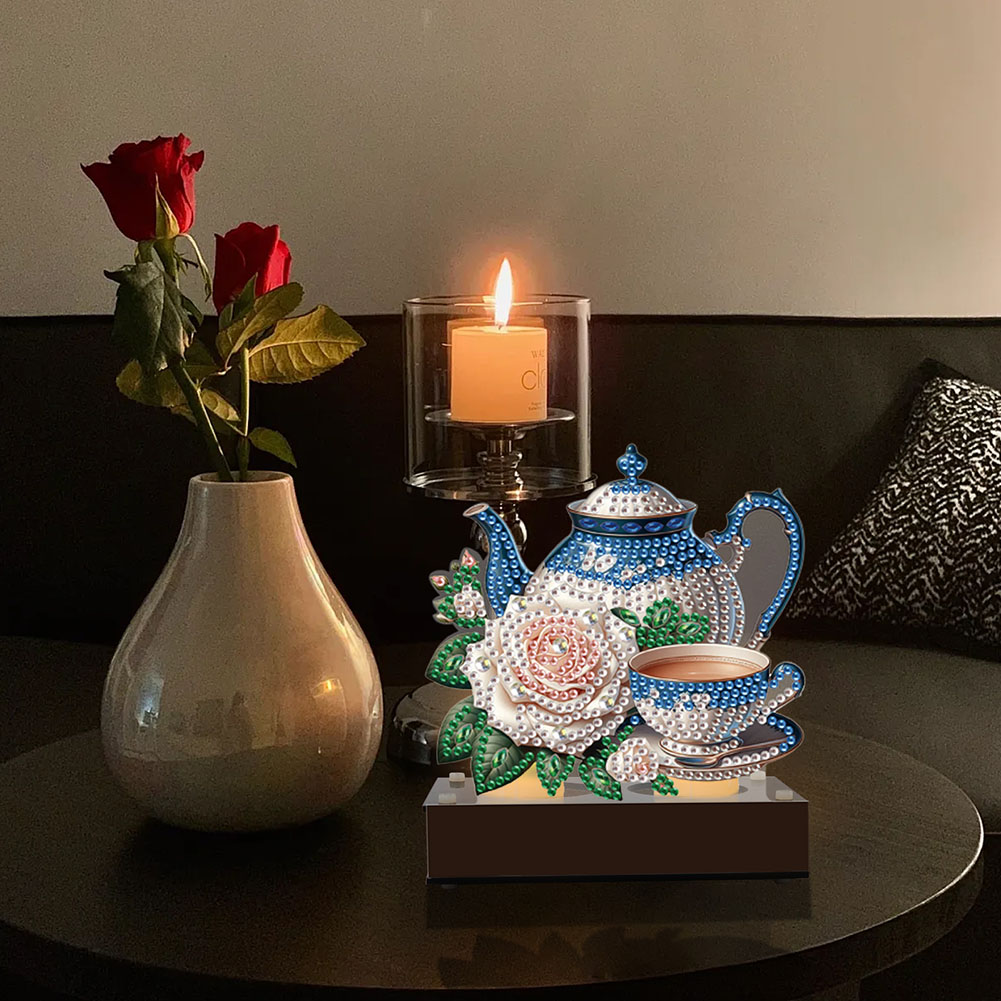 5D DIY Teapot Teacup Diamond Art Mini Candle Holder for Aromatherapy Art Crafts