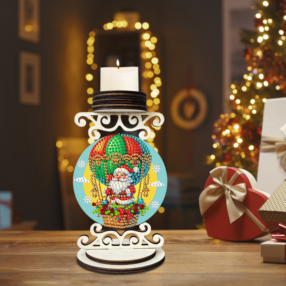 5D DIY Wooden Special Shaped Christmas Santa Claus Diamond Handmade Candle Holder