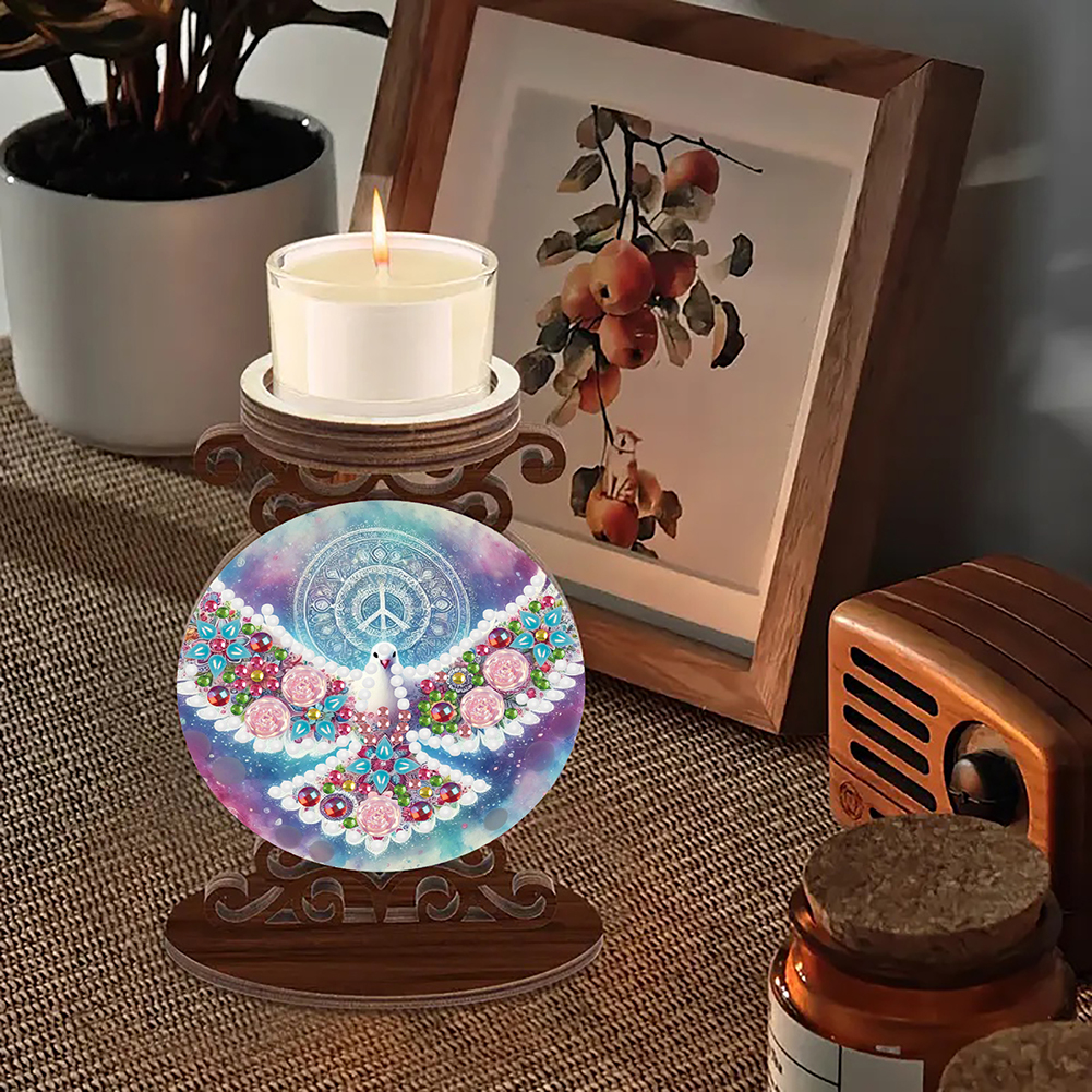 Wooden Diamond Painting Candle Holder Rhinestone Candlestick Decor (Bird)