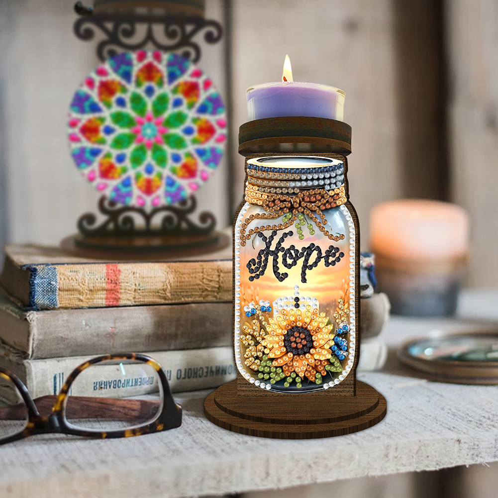 Wooden Hope Candle Bottle 5D DIY Diamond Painting Candle Holder Decor for Adults