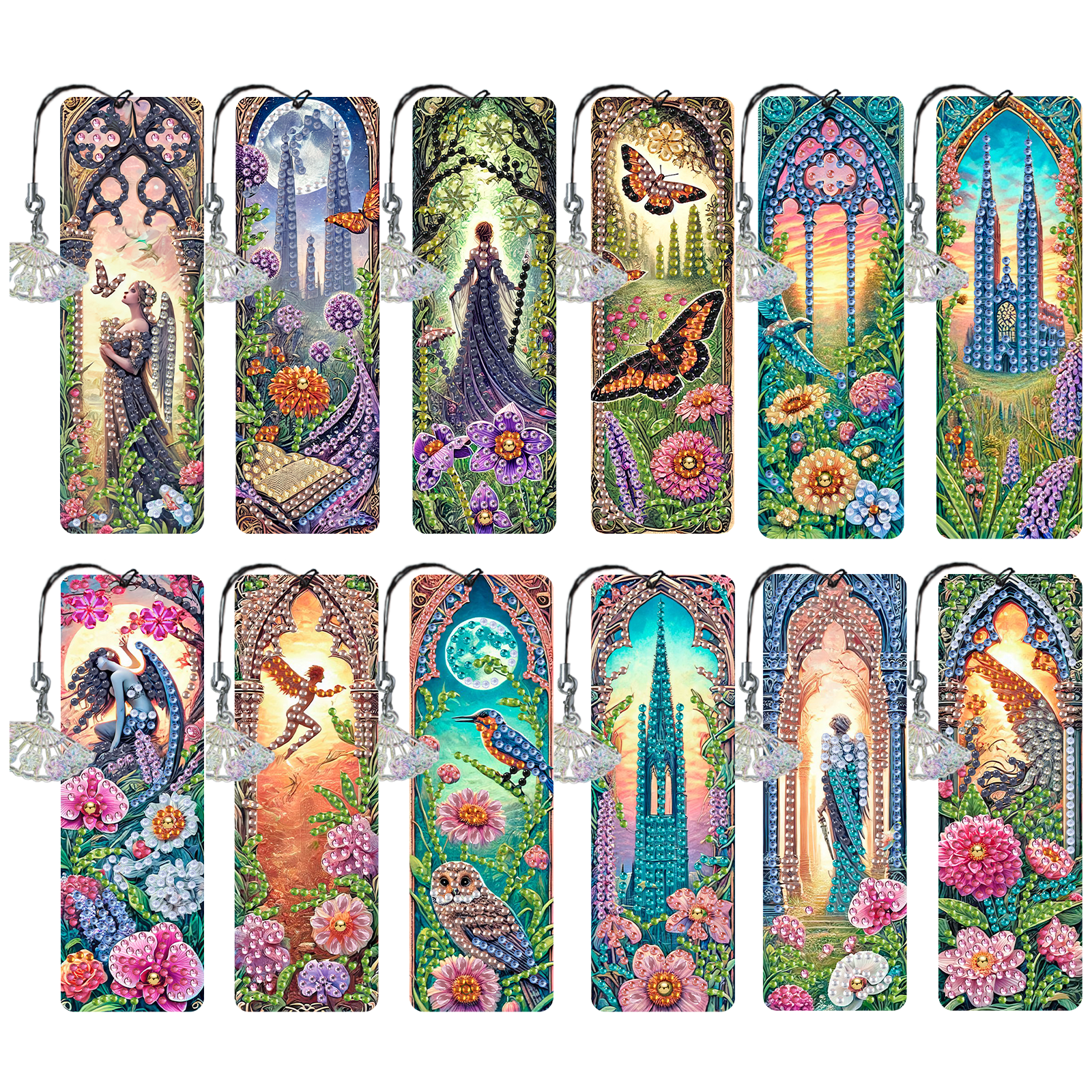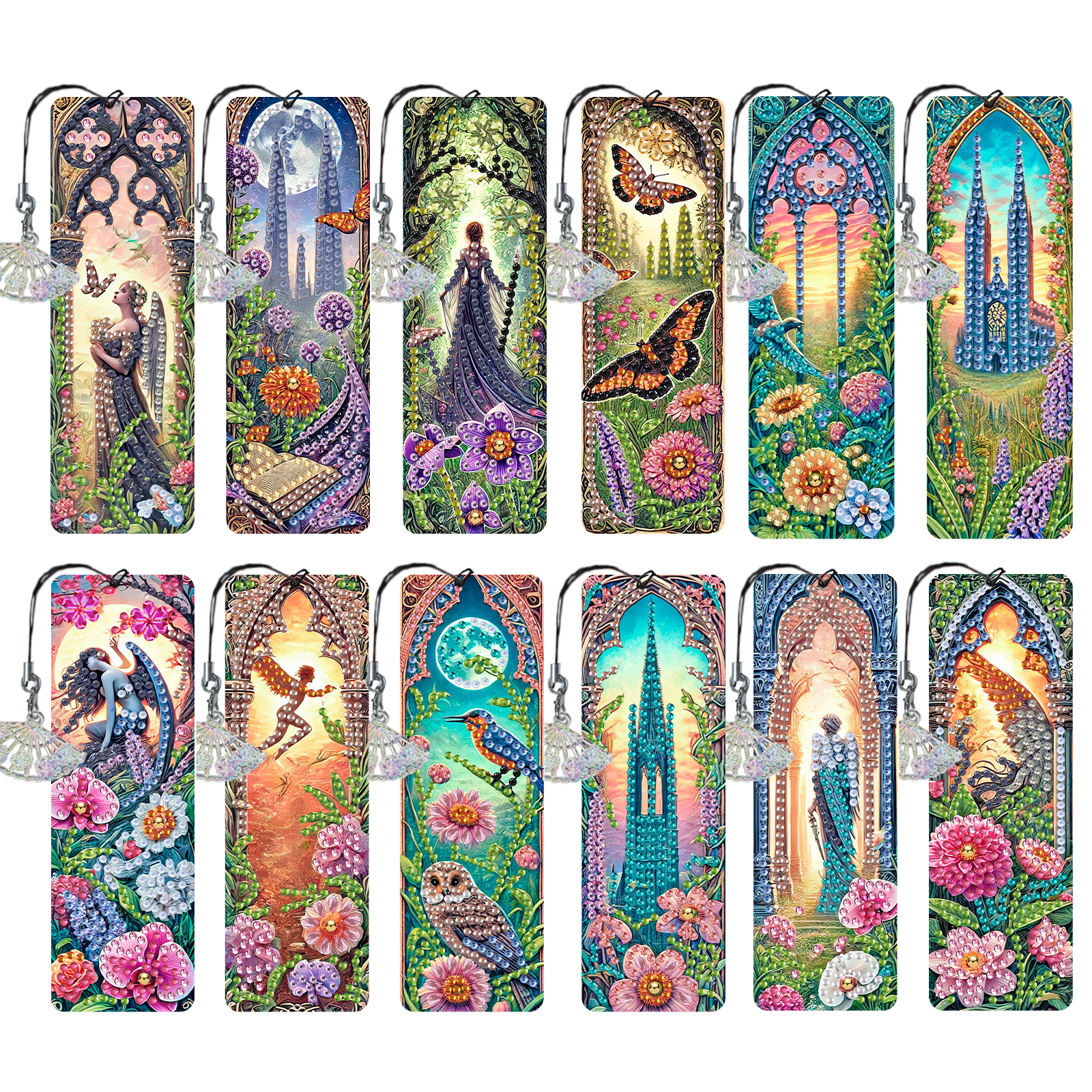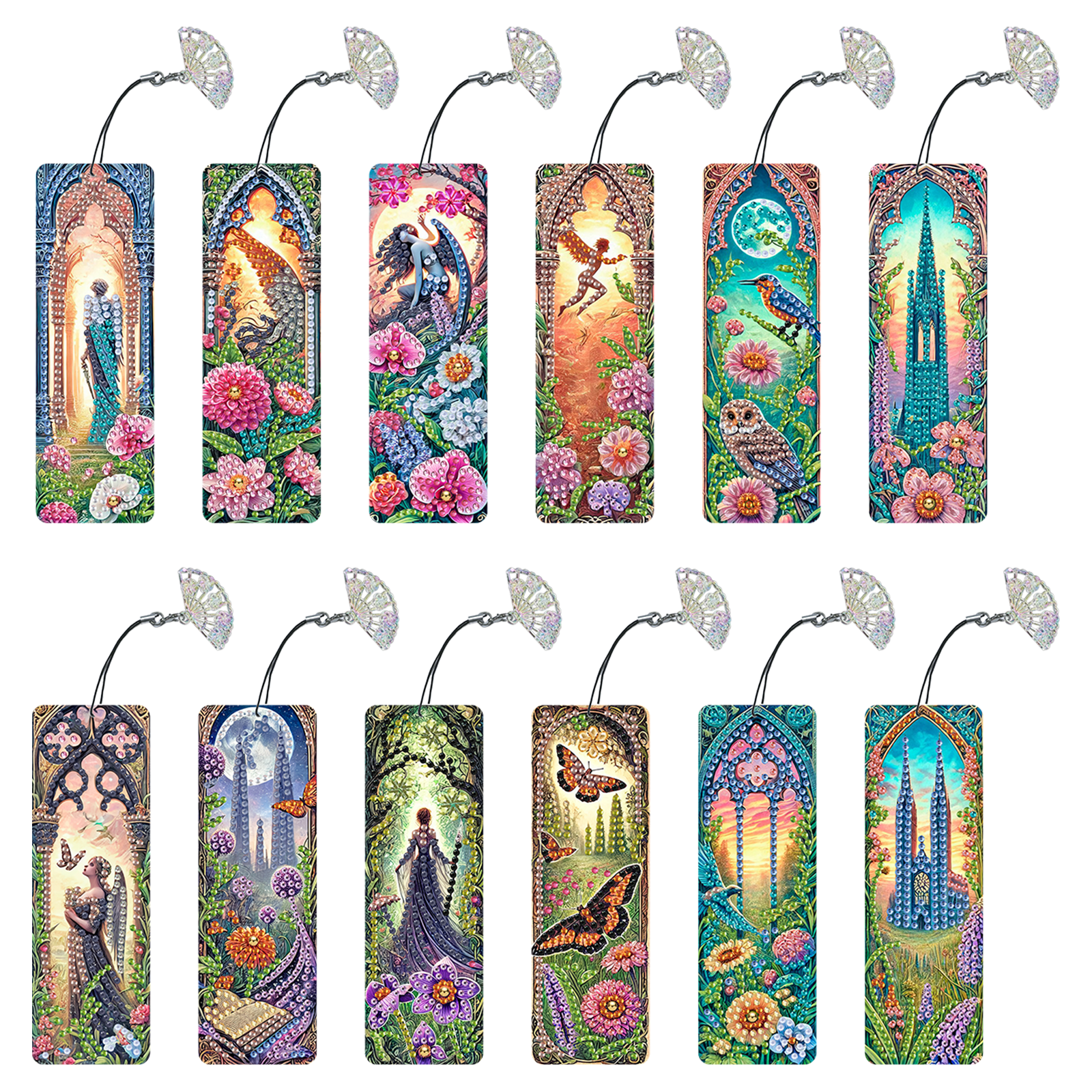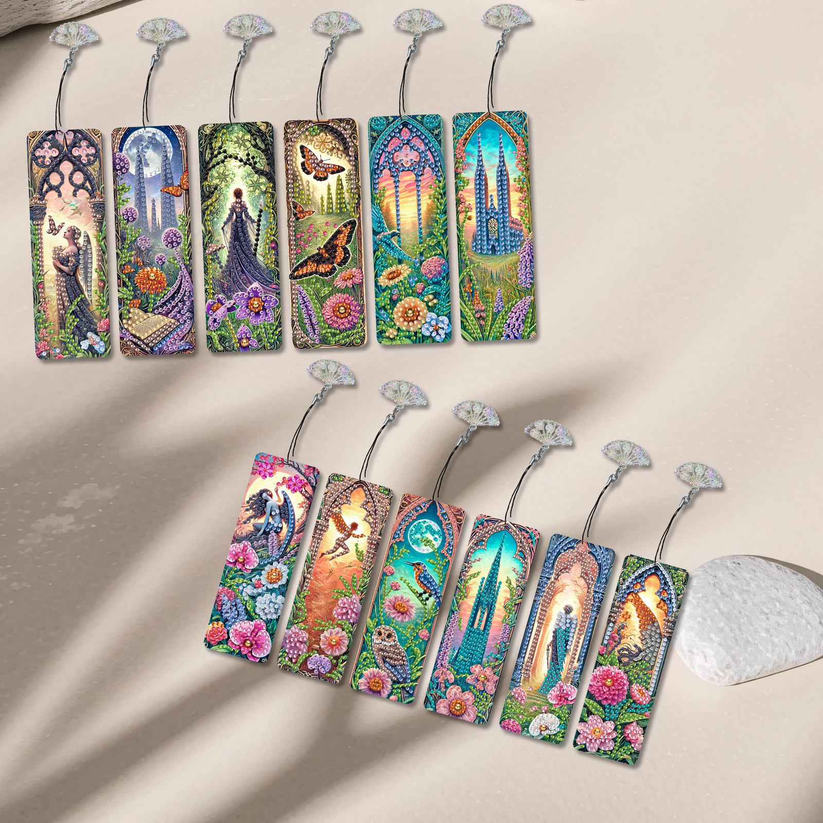 12Pcs Fairies and Flowers DIY Diamond Painting Bookmarks for Reading Enthusiasts