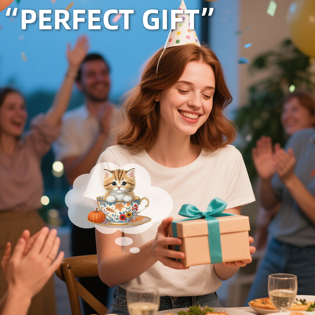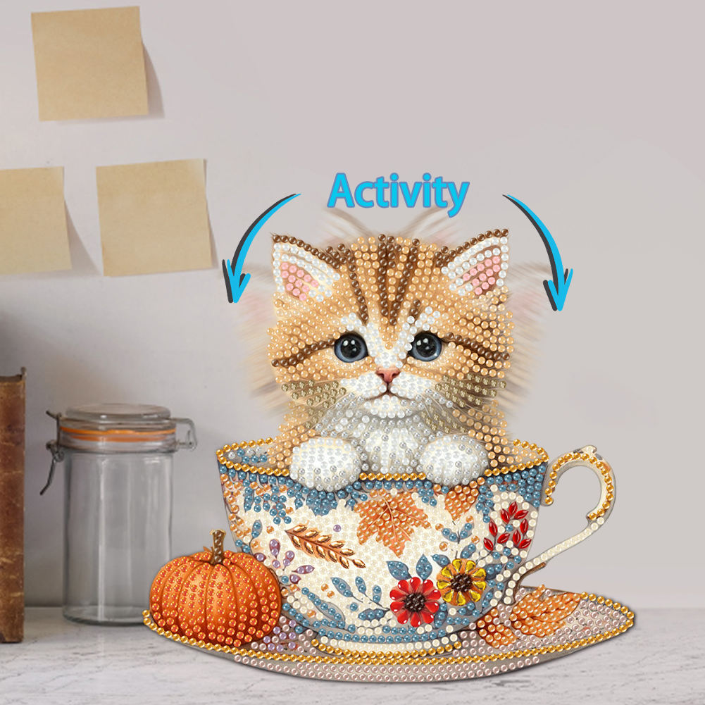 2D Flat Cat DIY Shaking Head Teacup Cat Diamond Painting Desktop Decorations