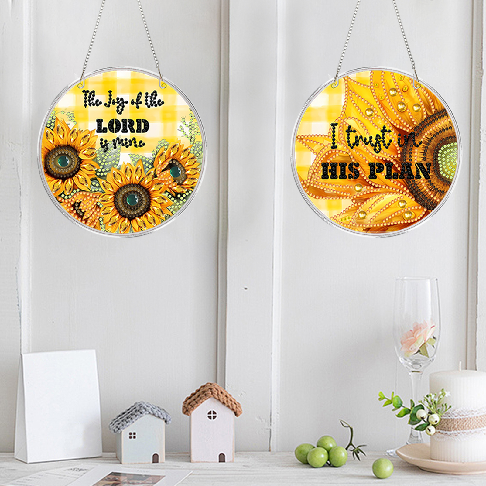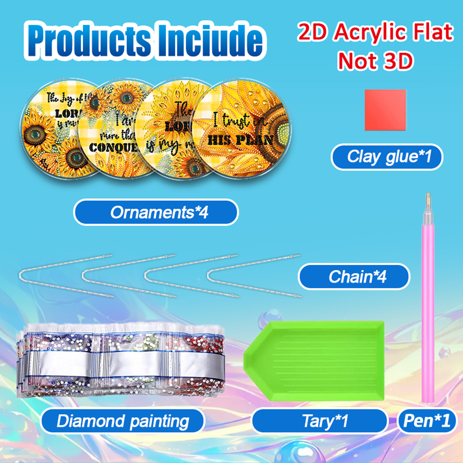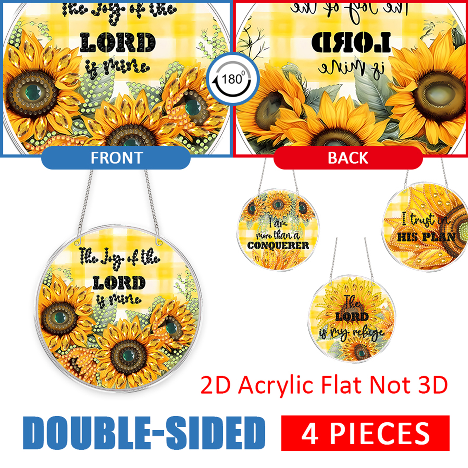 4pcs Sunflower Text DIY 2D Flat Acrylic Diamond Painting Kit Diamond Art Pendant