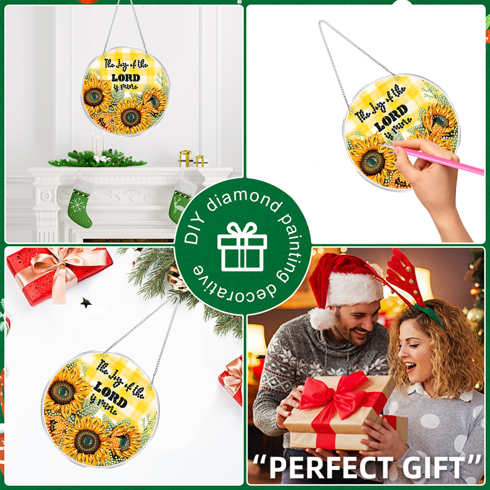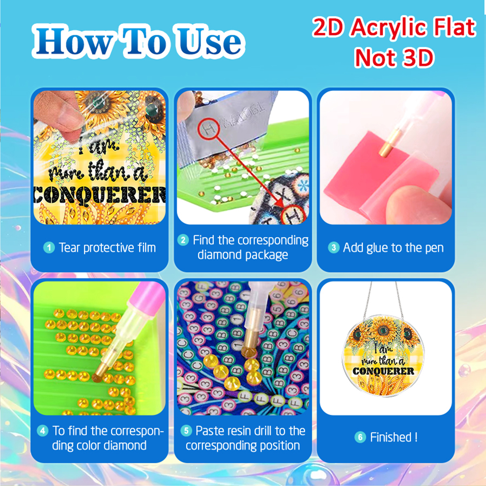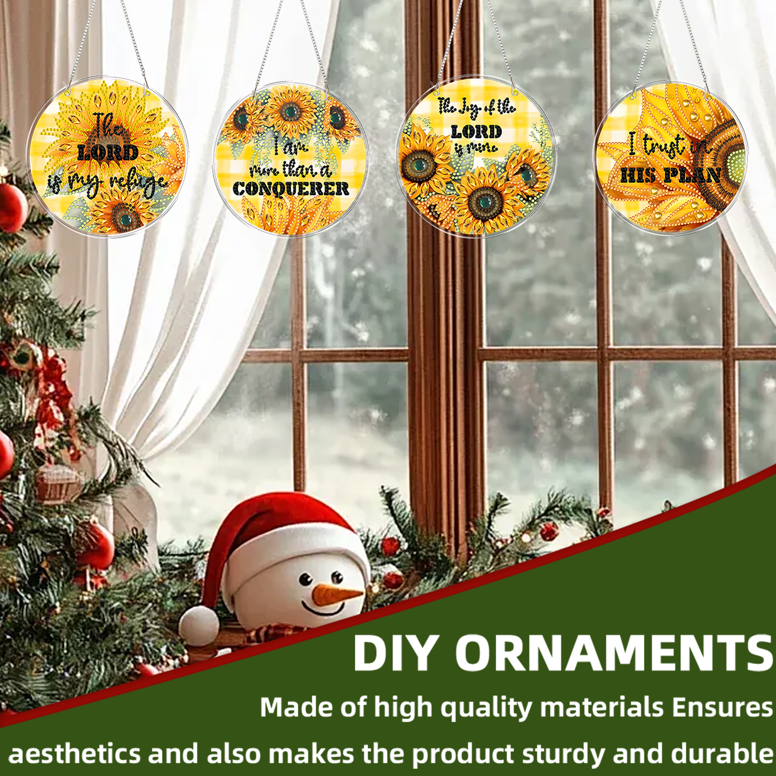 4pcs Sunflower Text DIY 2D Flat Acrylic Diamond Painting Kit Diamond Art Pendant