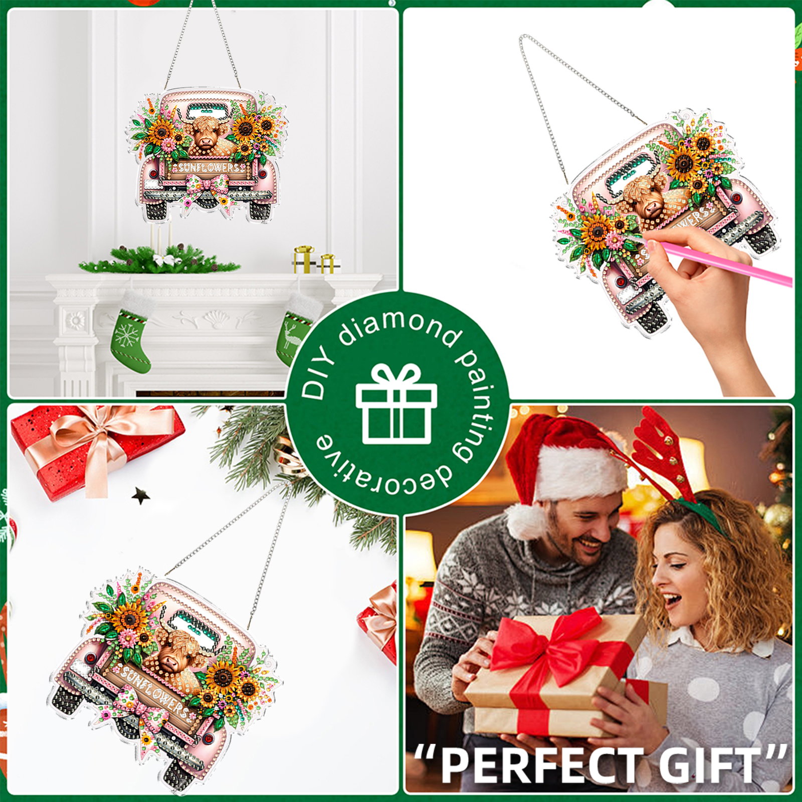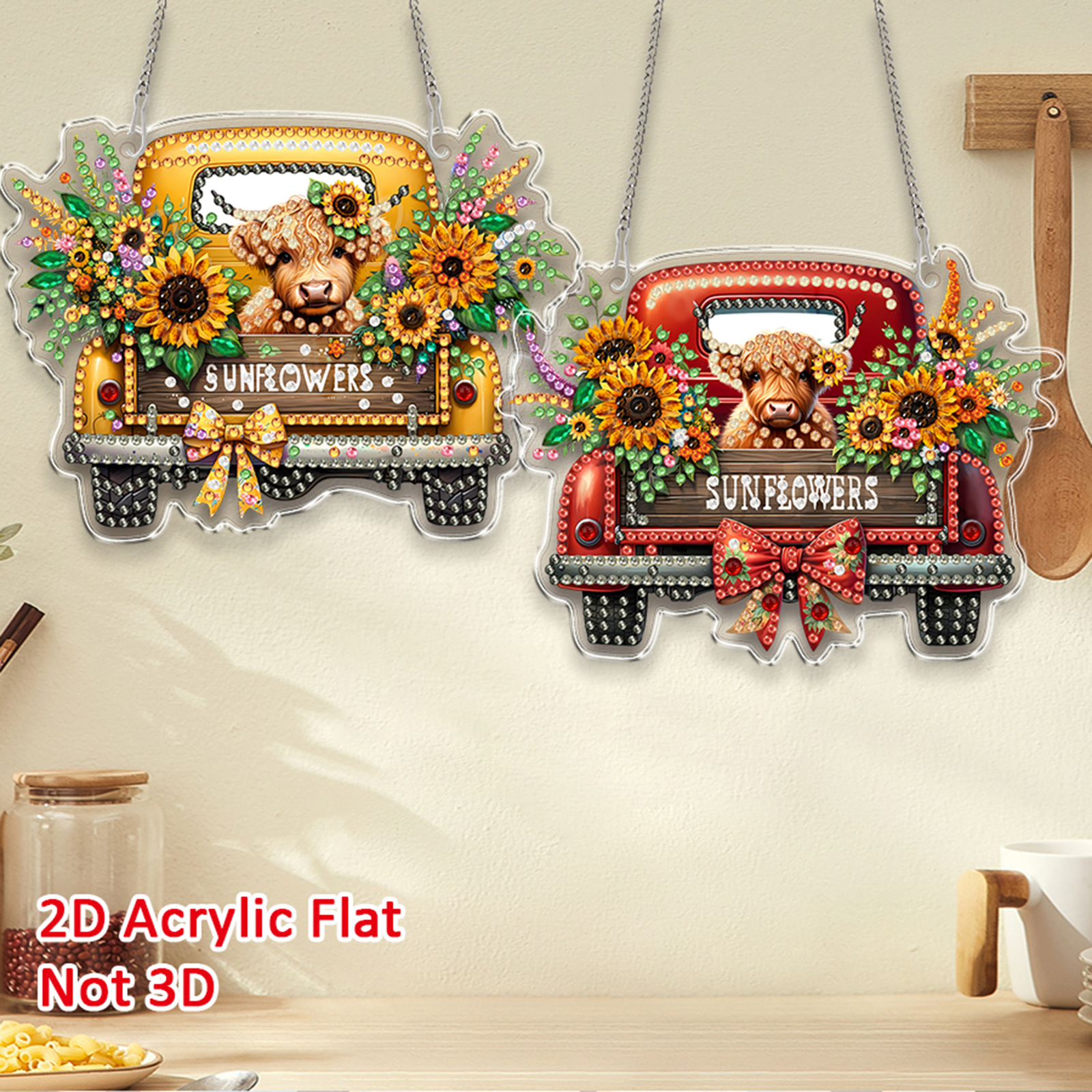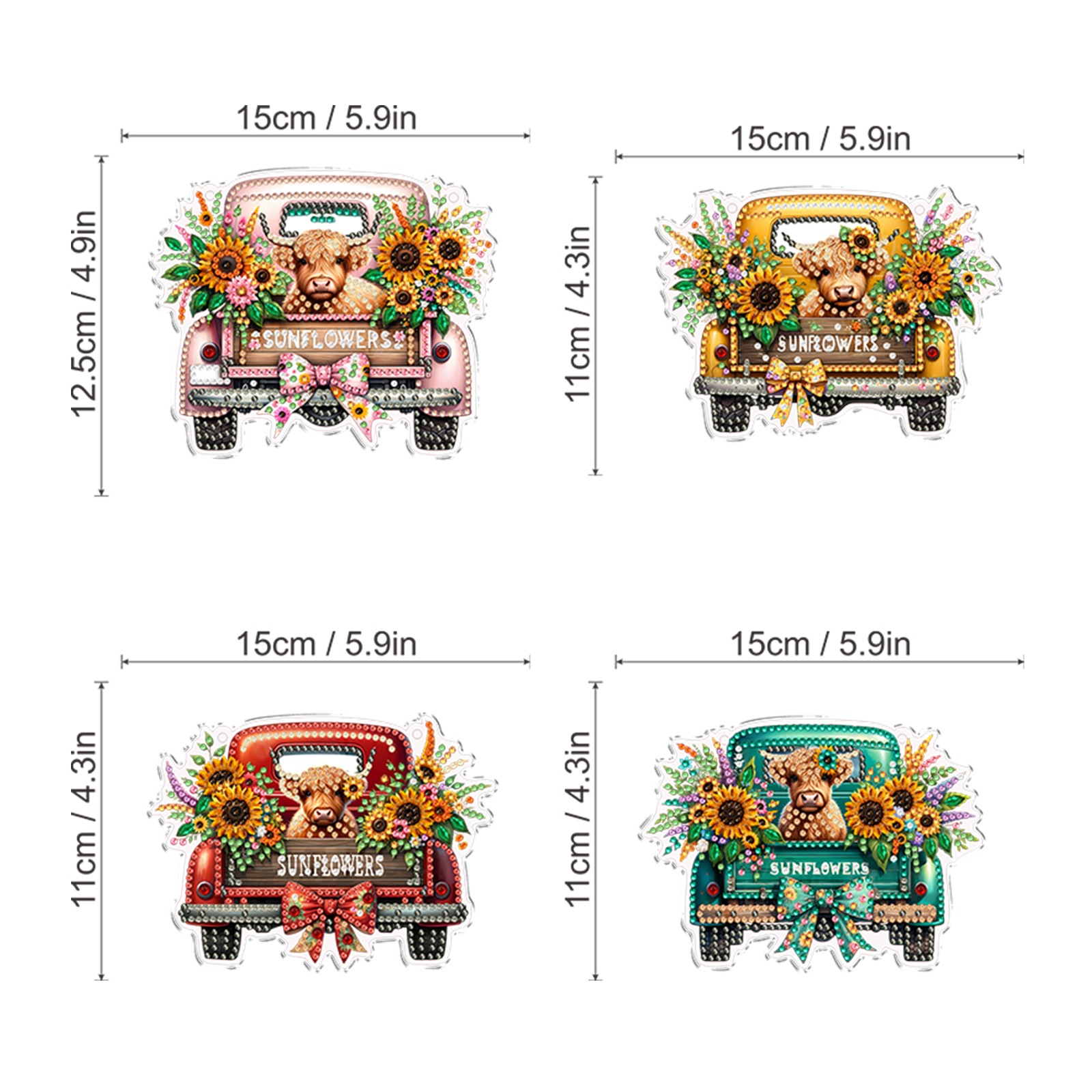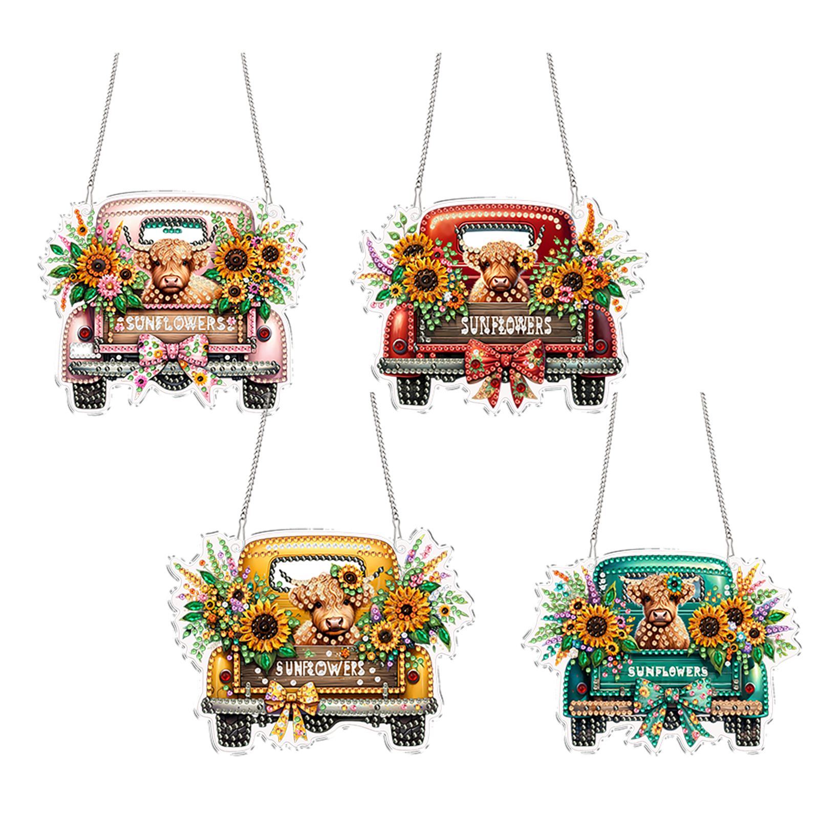 4Pcs Yak Cart 2D Flat DIY Special Shape Hanging Diamond Art Kits Wall Door Decor