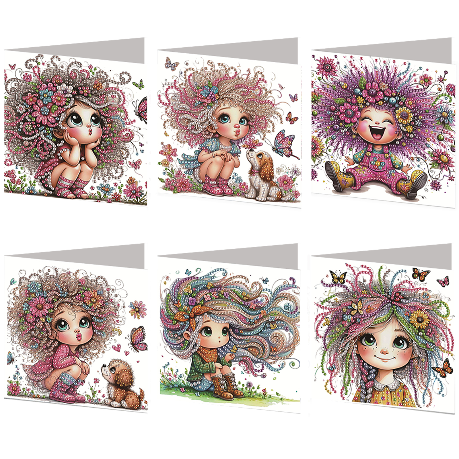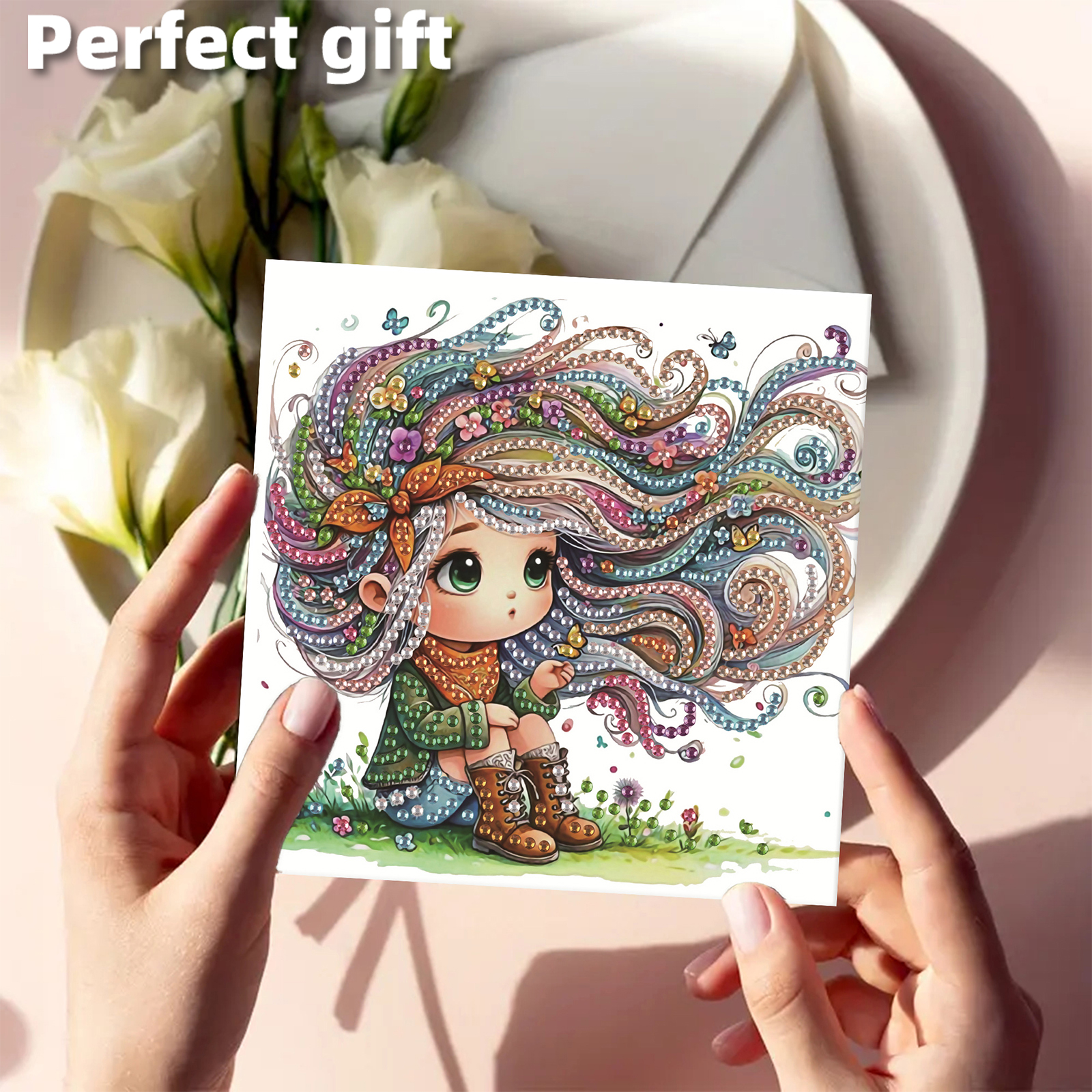 6pcs Girl DIY Diamond Art Greeting Cards Thank You Cards and Holiday Blessings(Blank Inside)