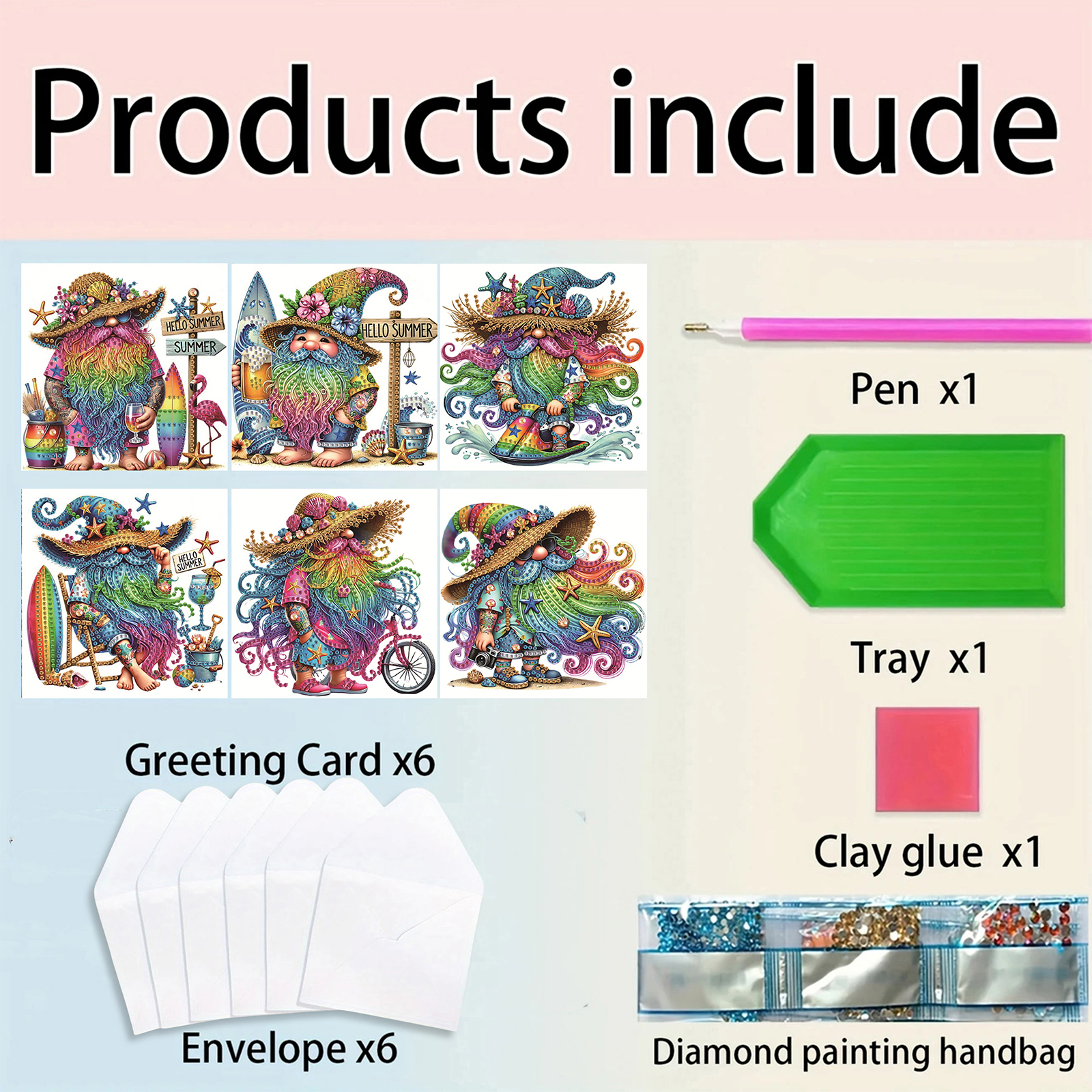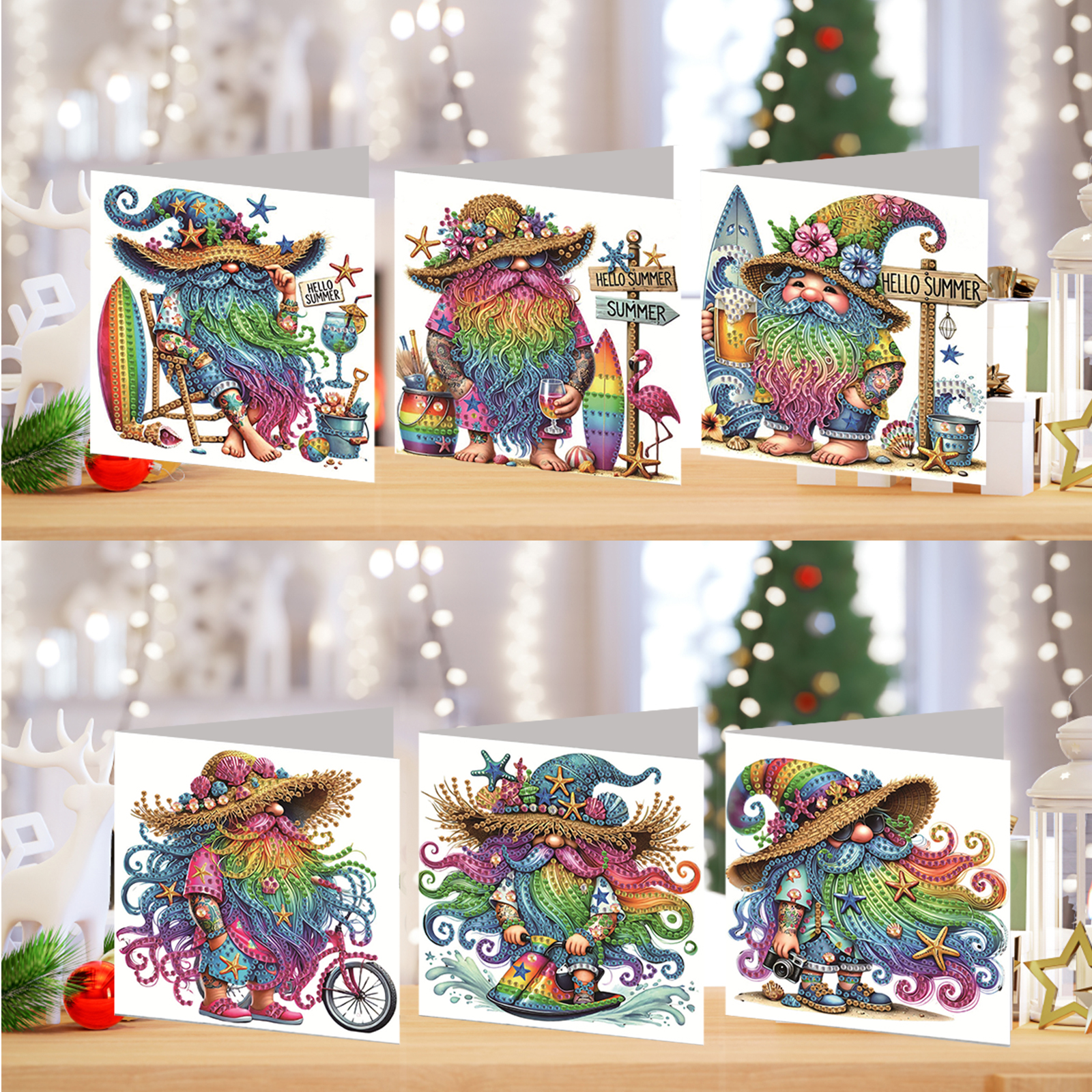 6pcs Gnome DIY Diamond Art Greeting Cards Thank You Cards and Holiday Blessings(Blank Inside)