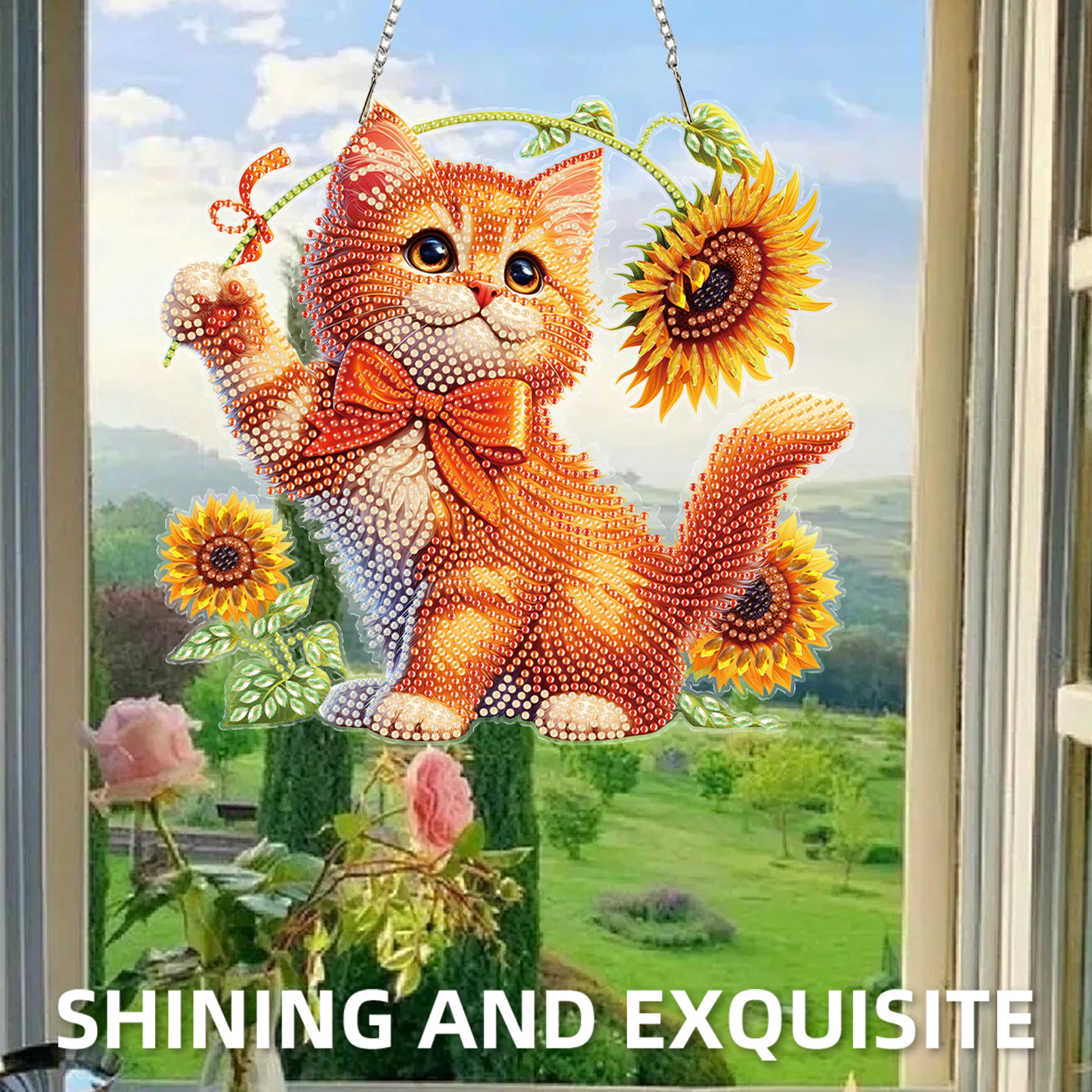 Cats Sunflower 2D Flat DIY Special Shape Hanging Diamond Art Kits Wall Decor