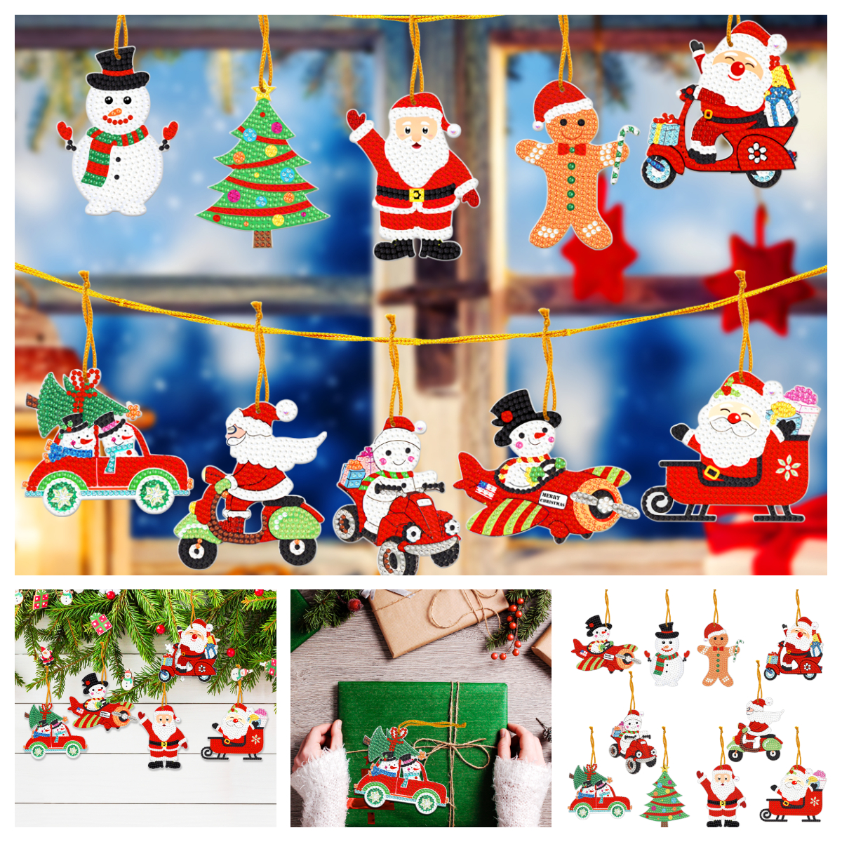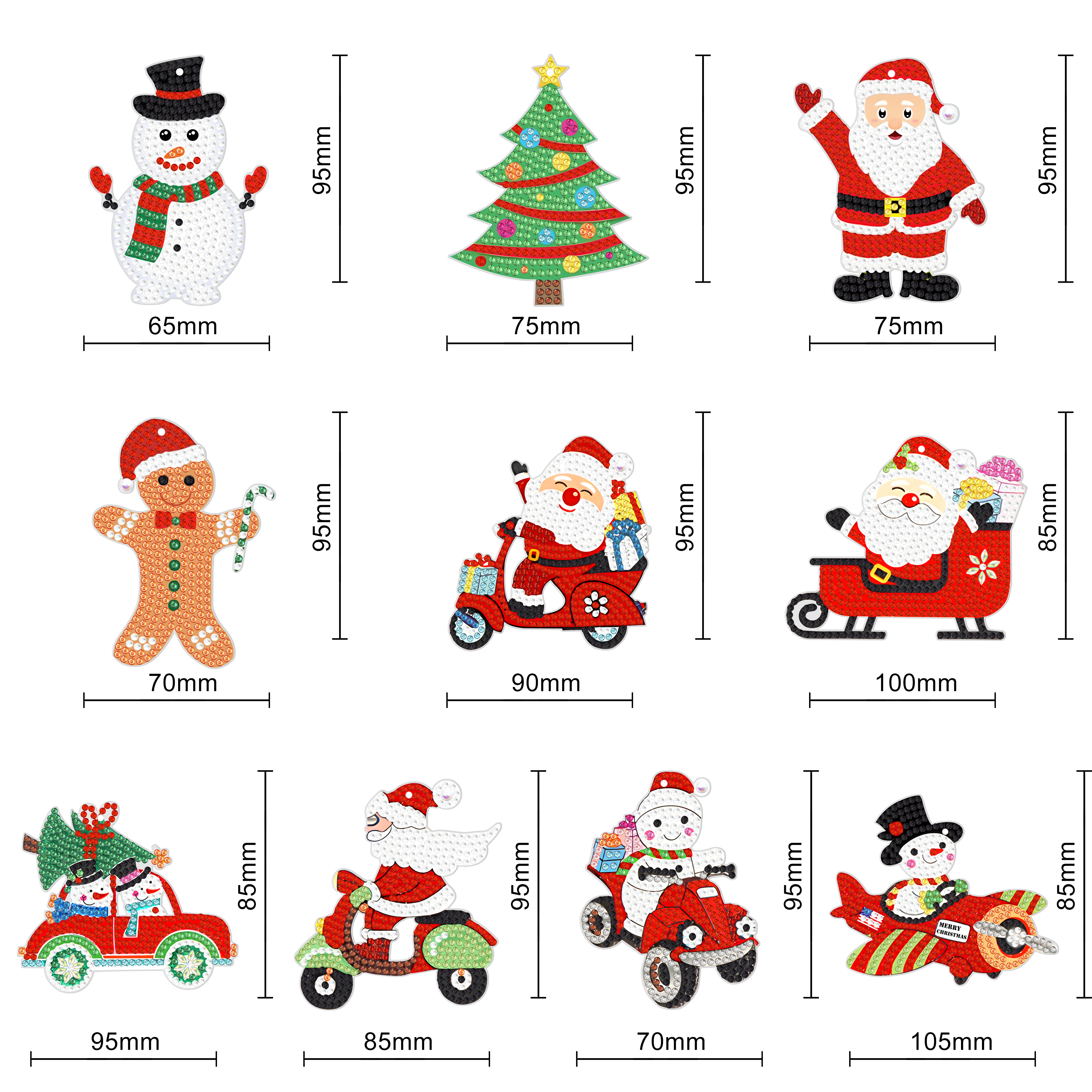 10pcs Christmas Diamond Painting Ornament Snowflake Gingerbread Man Christmas Tree Santa Claus (Single-sided Shaped Diamond)