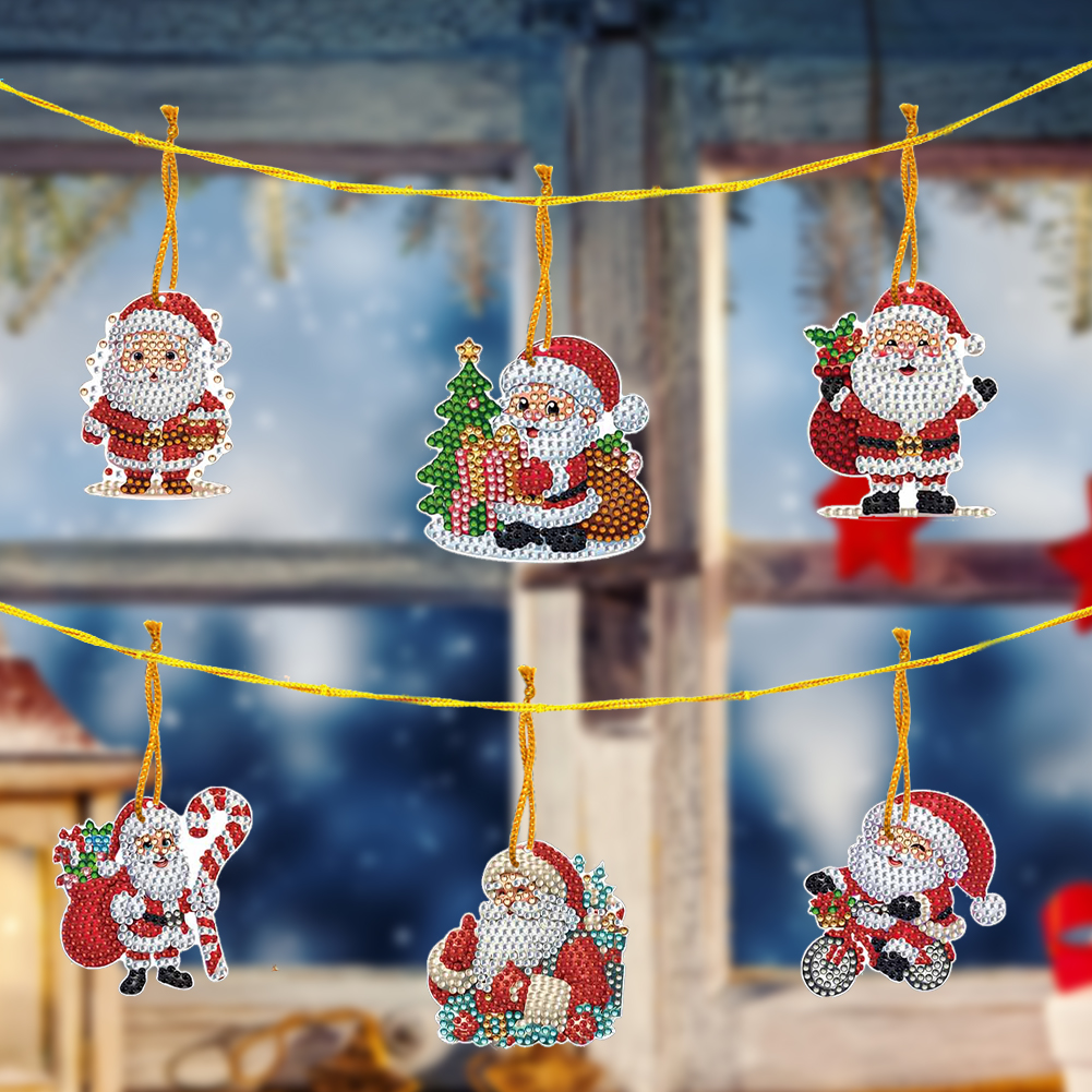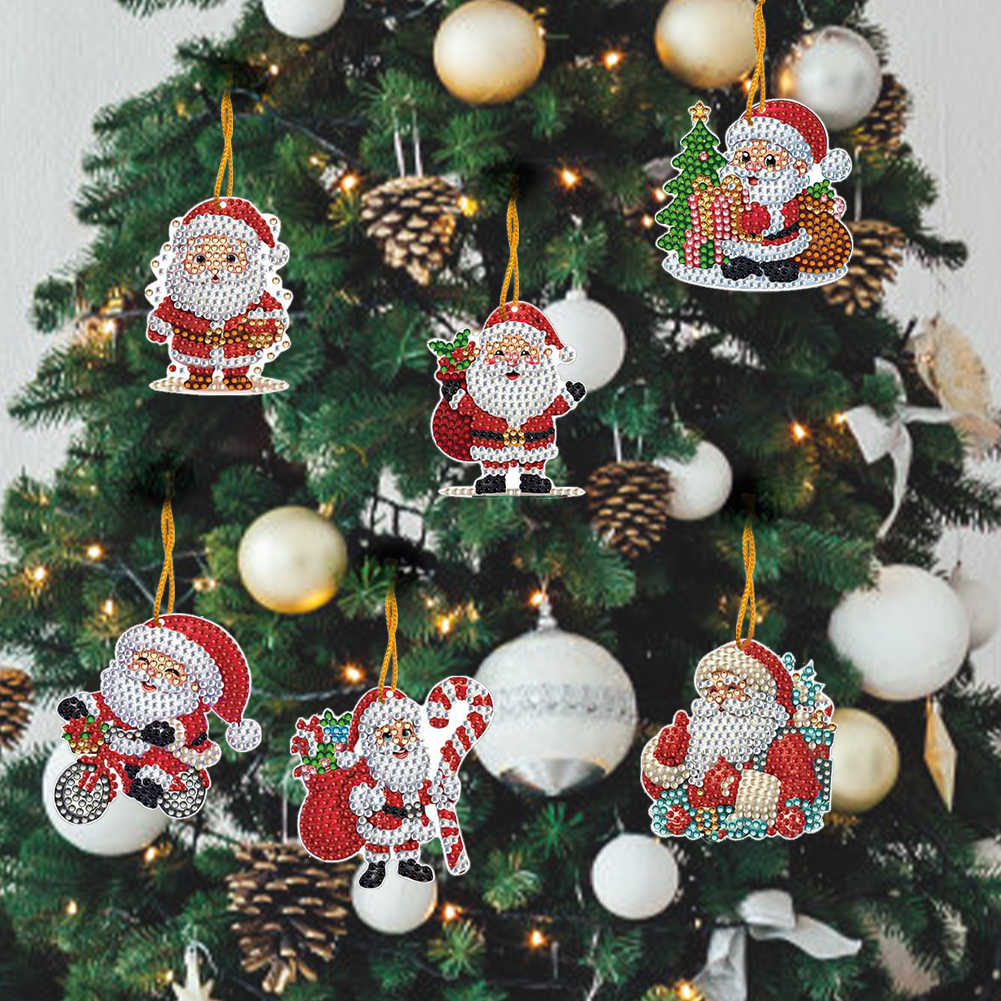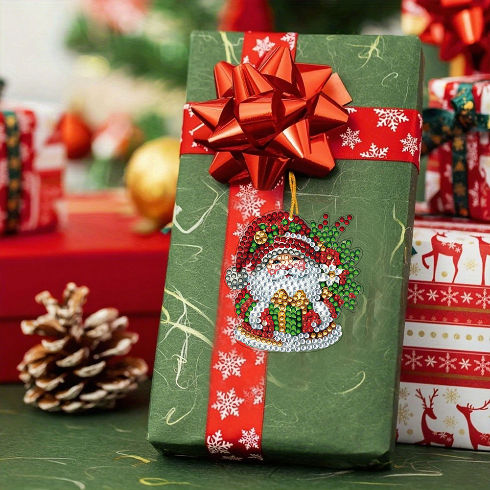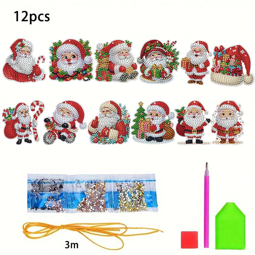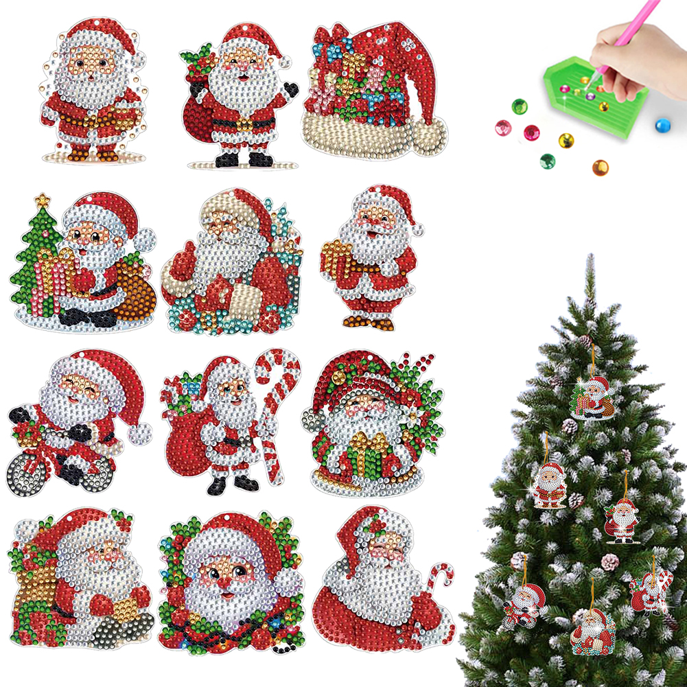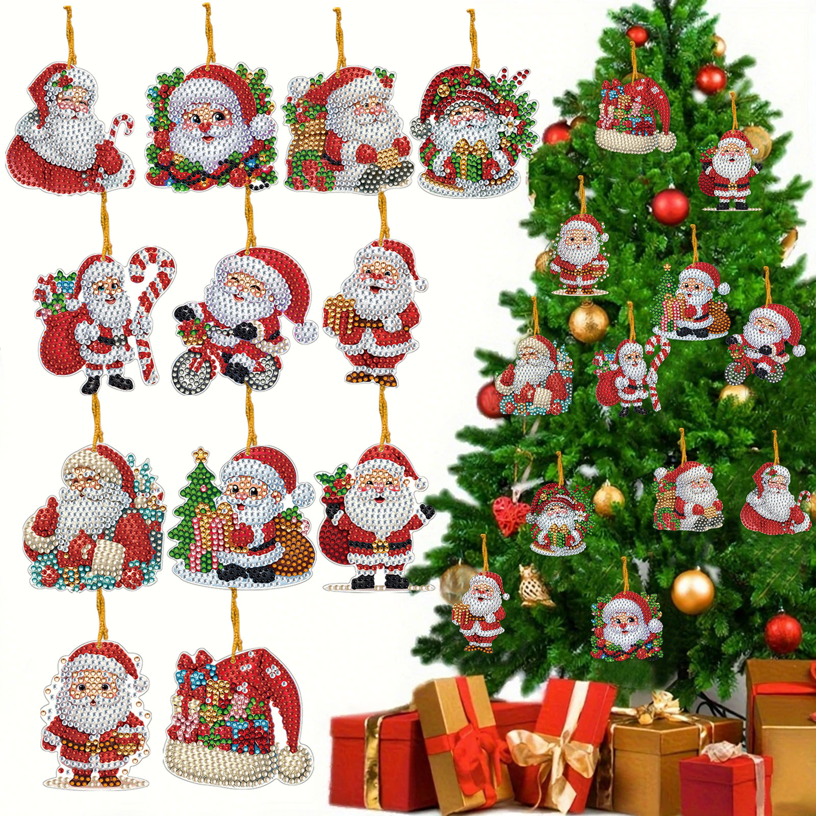 12Pcs Xmas Theme 2D Flat DIY Diamond Christmas Tree Pendant Wall Door Decoration