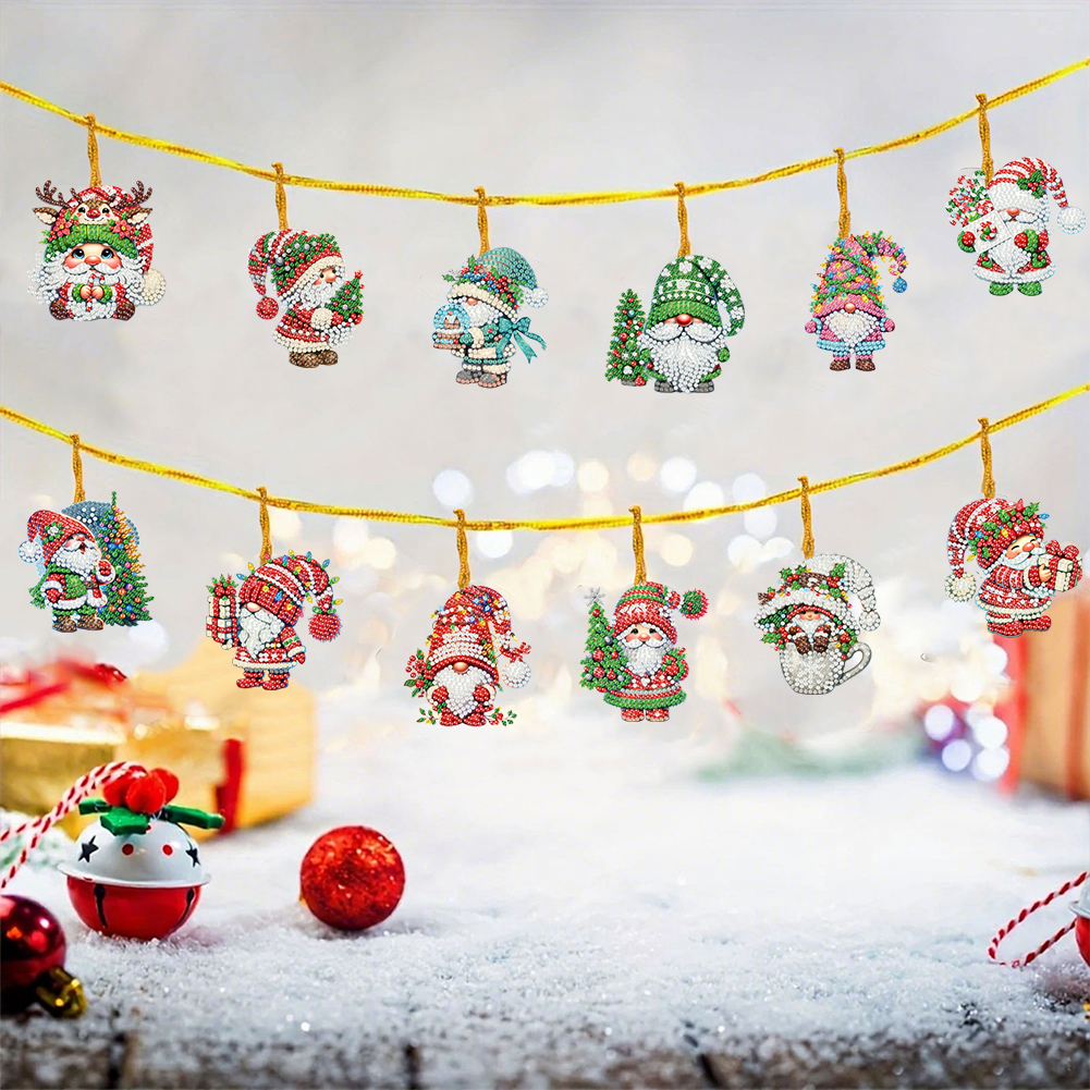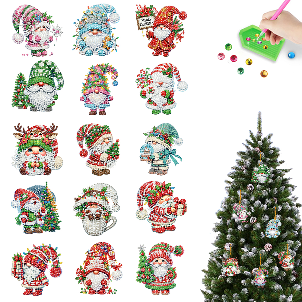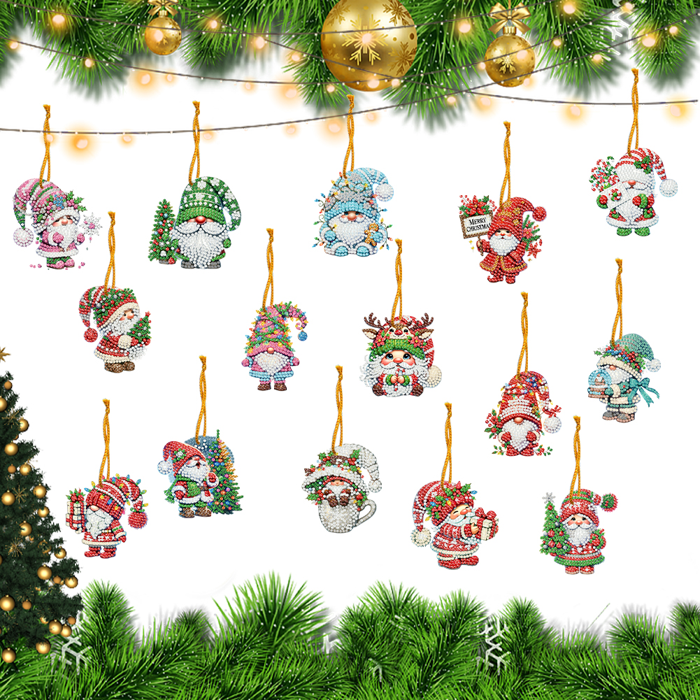 15pcs Xmas Gnome Theme 2D Flat DIY Hanging Diamond Art Kits Home Wall Decor