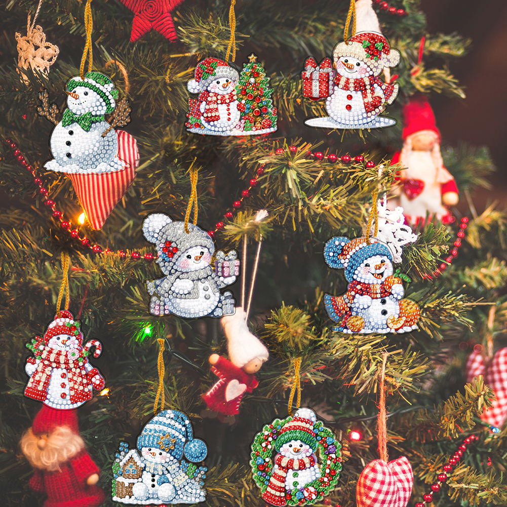 5D DIY 8Pcs Christmas Snowman Diamond Painting Christmas Tree Pendant for Xmas Tree