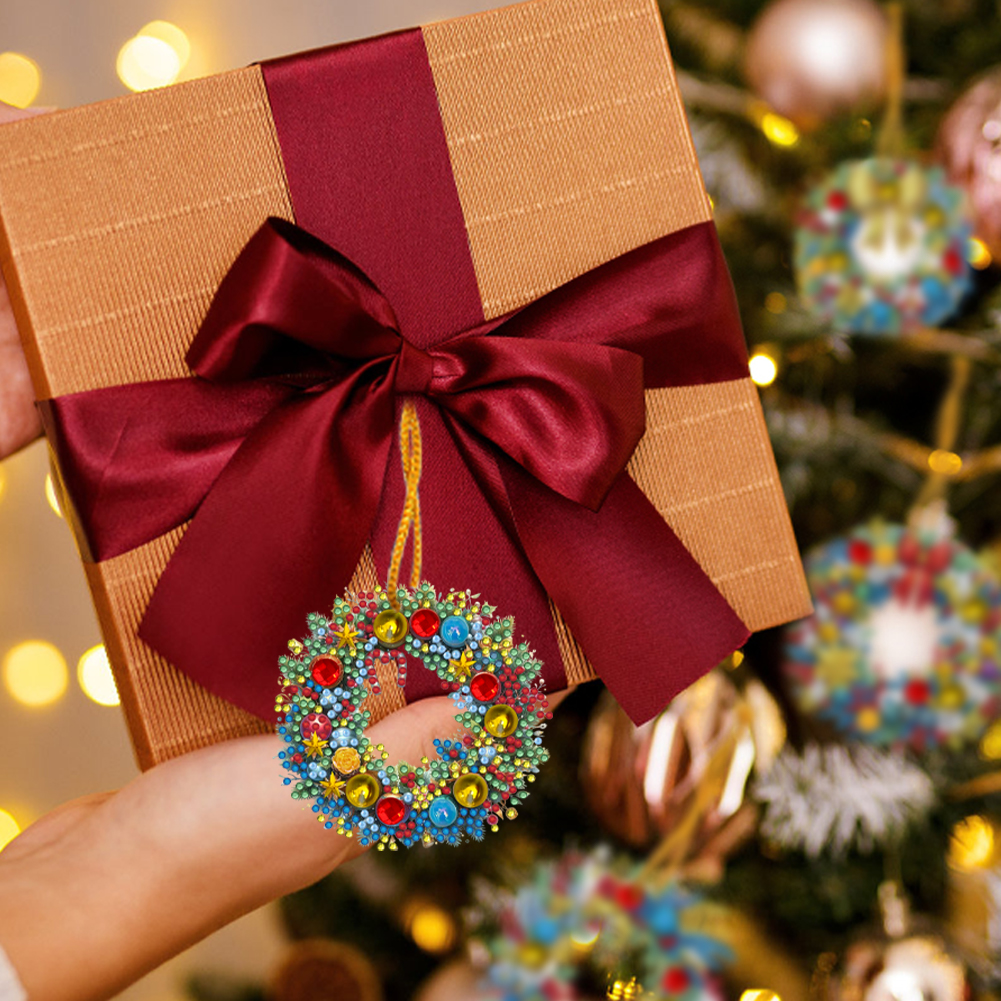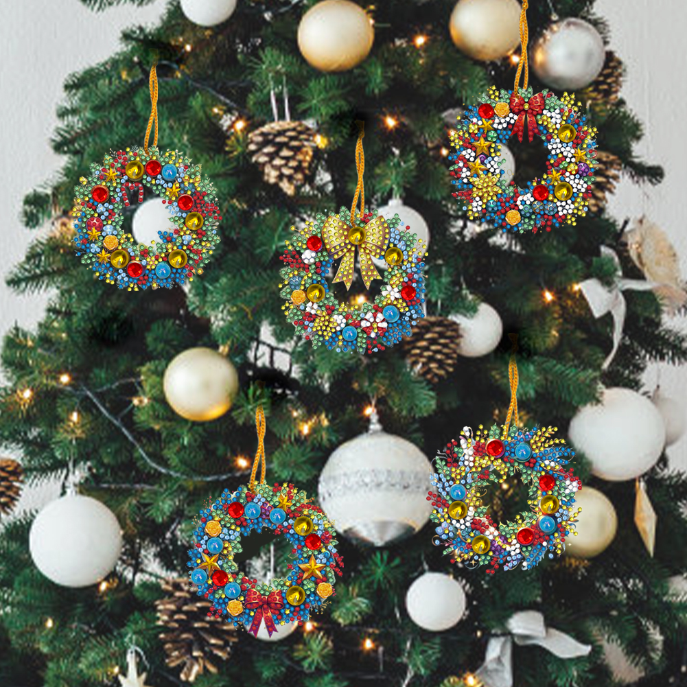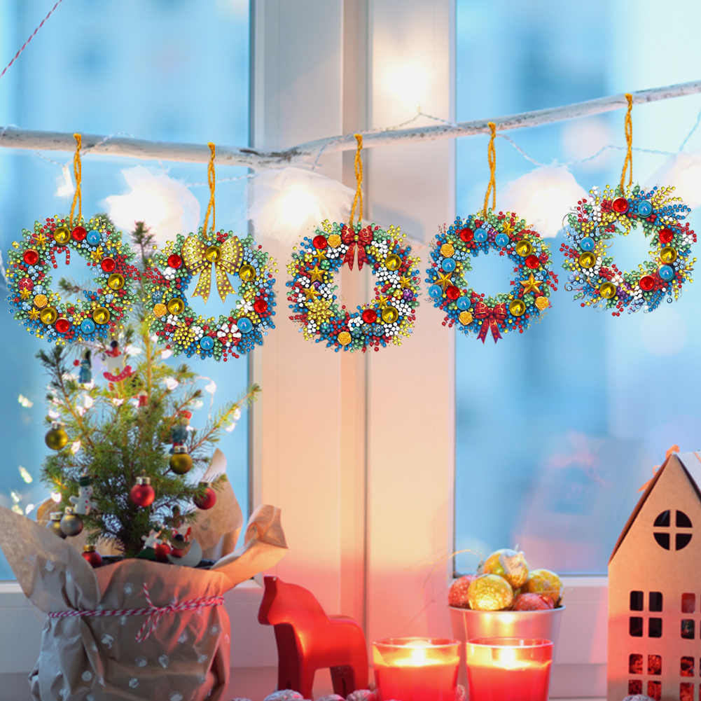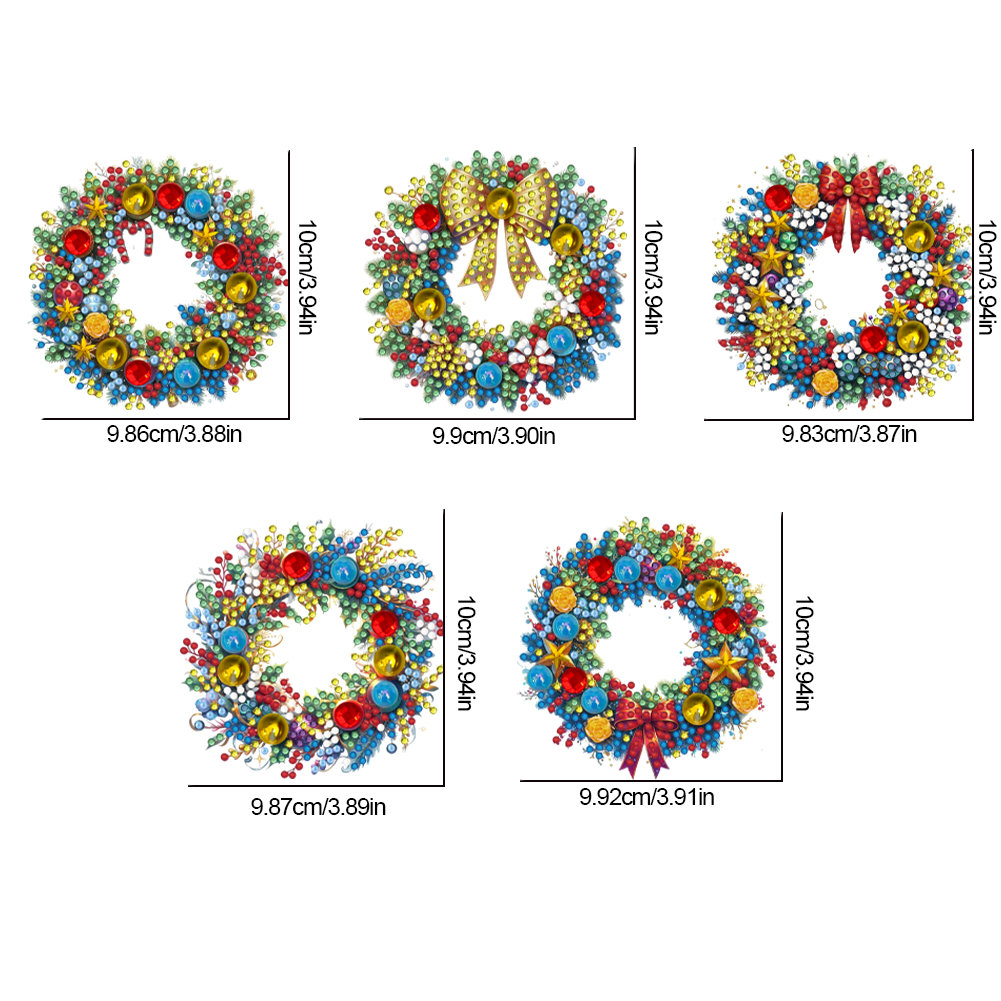 5Pcs DIY Christmas Wreath Acrylic Special Shaped 5D DIY Diamond Art Hanging Decor