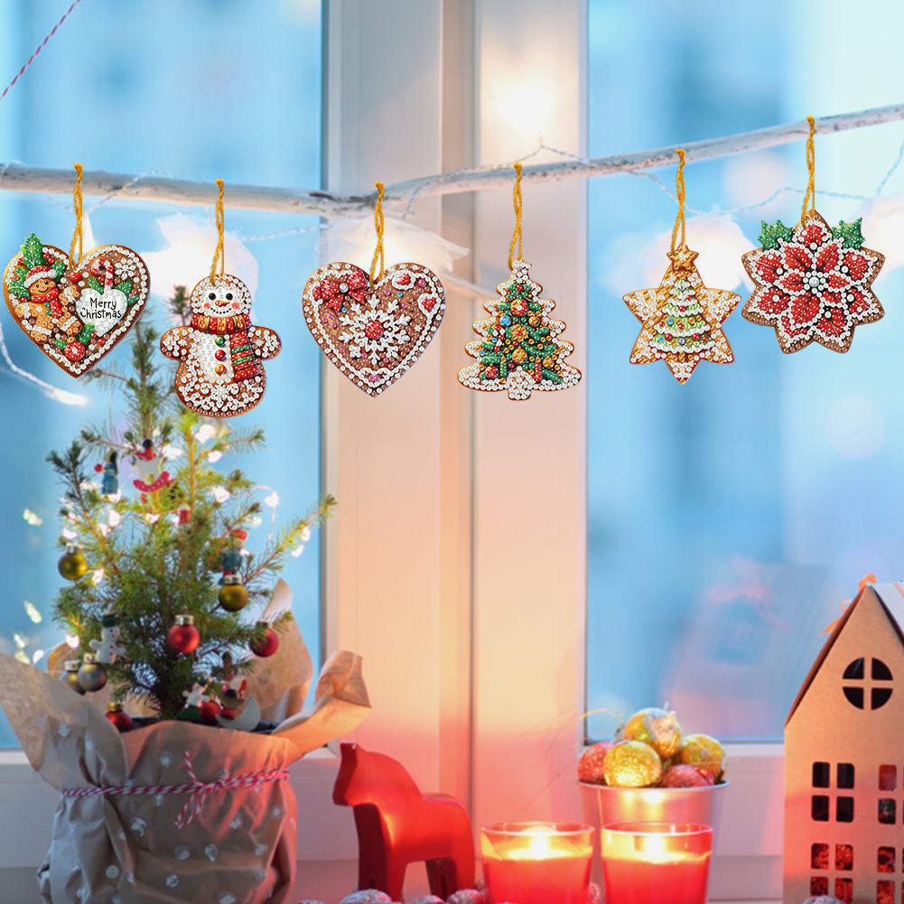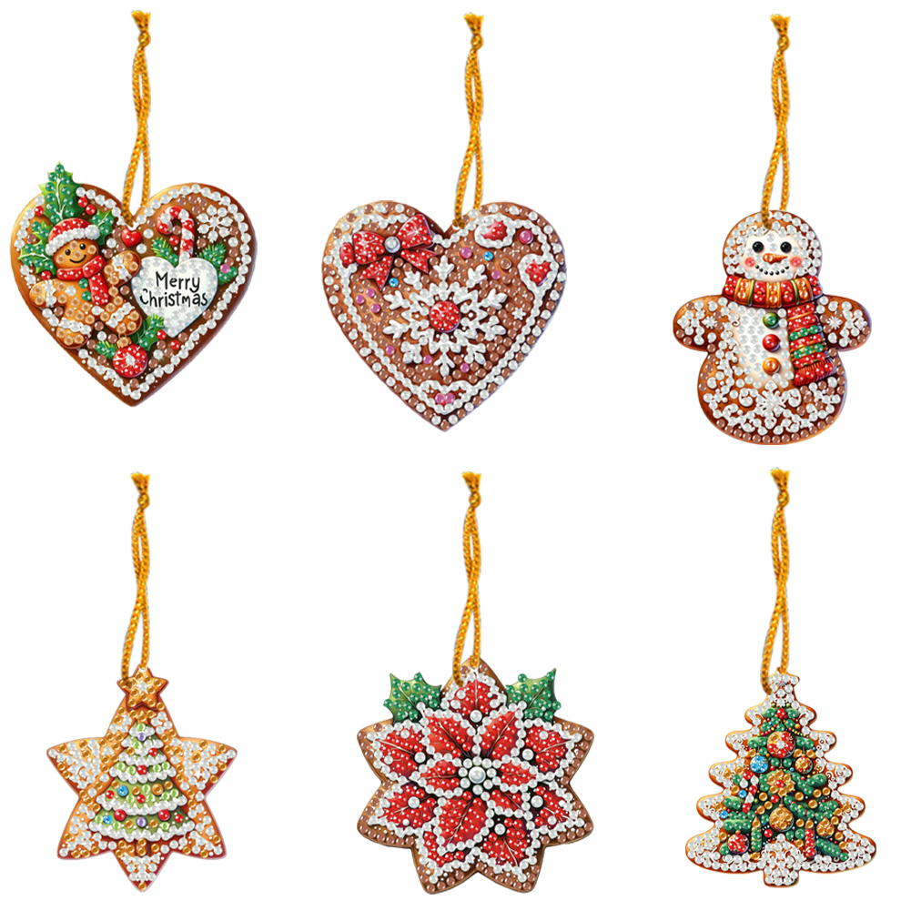 6pcs Merry Christmas 2D Flat DIY Diamond Art Pendant Wall Door Decoration